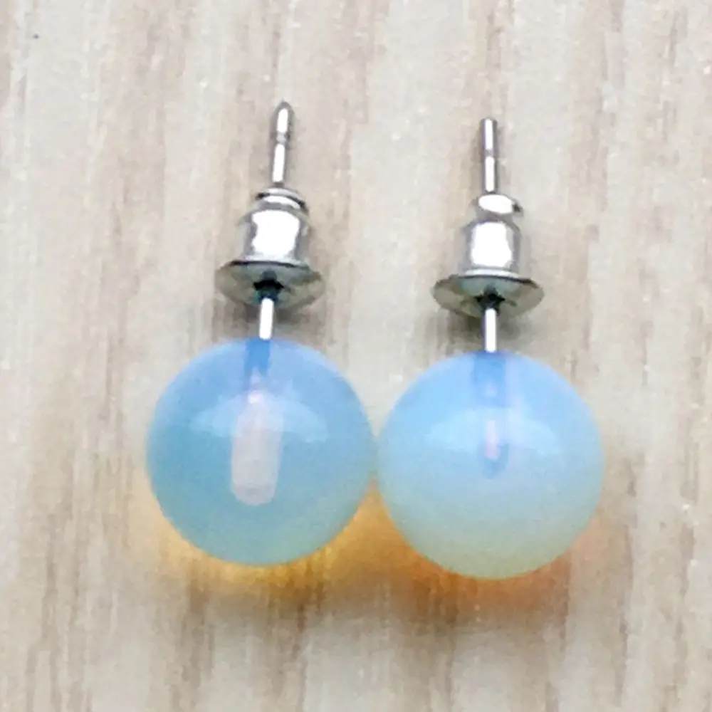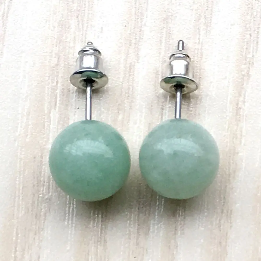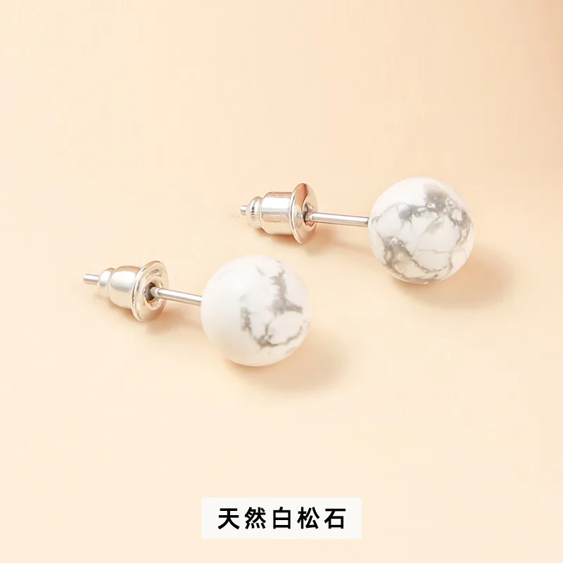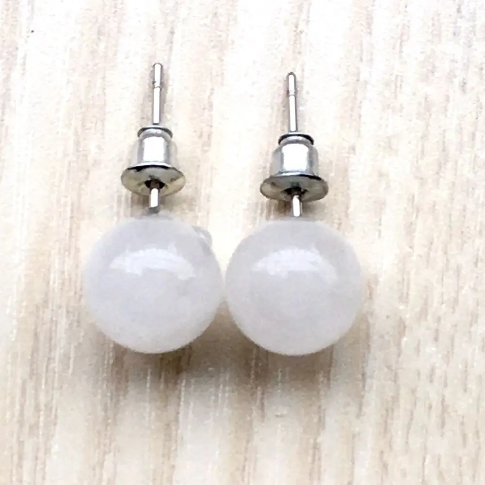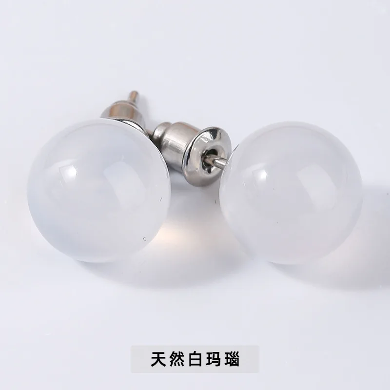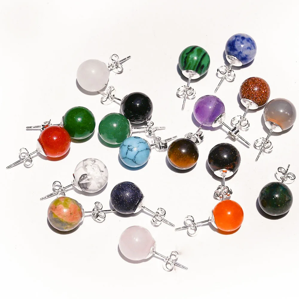 10 pairs Natural Stone Earrings Healing Crystal Quartzs Round Ball Beads Steel Stud Fashion Ear Jewelry for Women Girl Wholesale