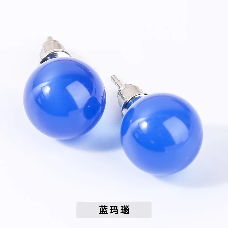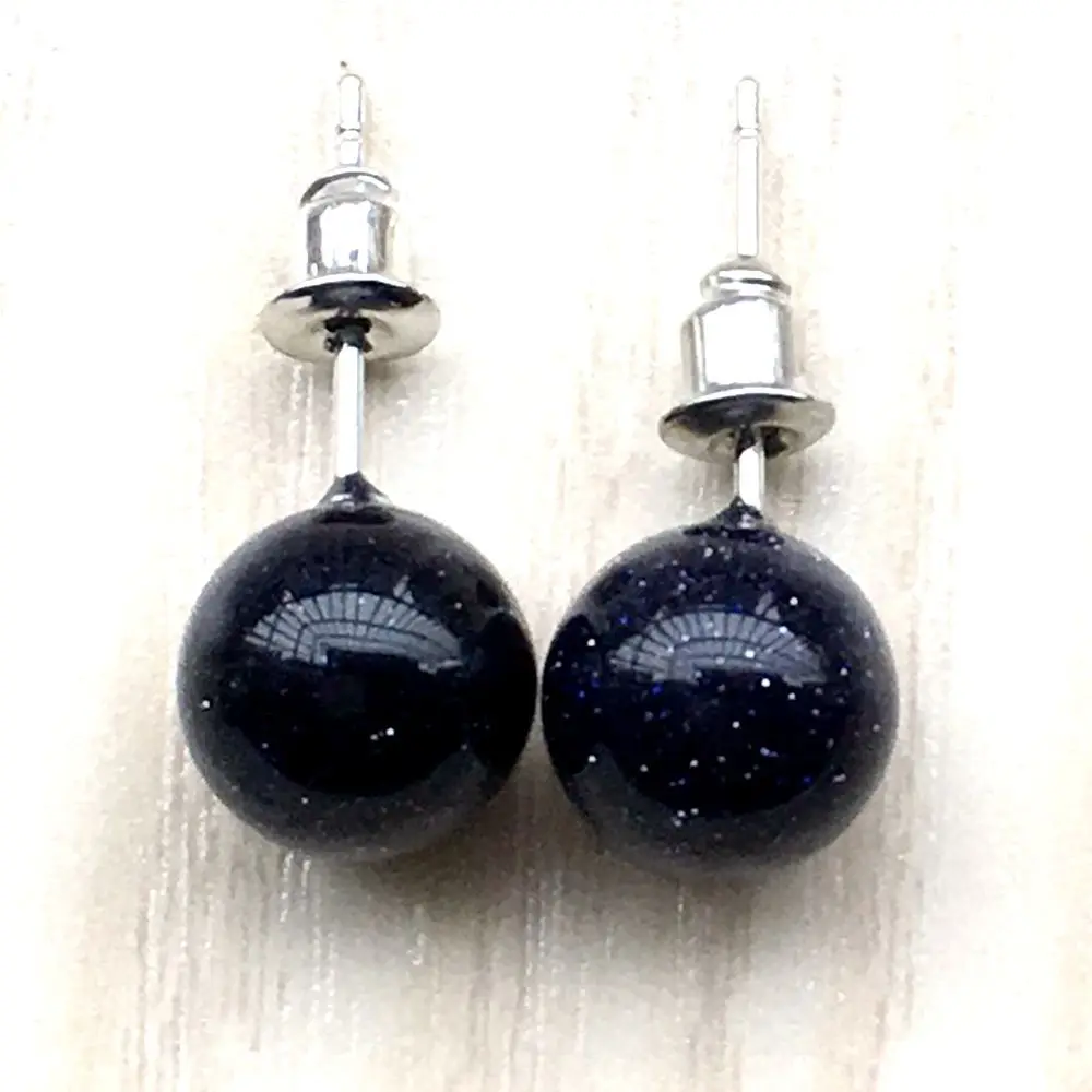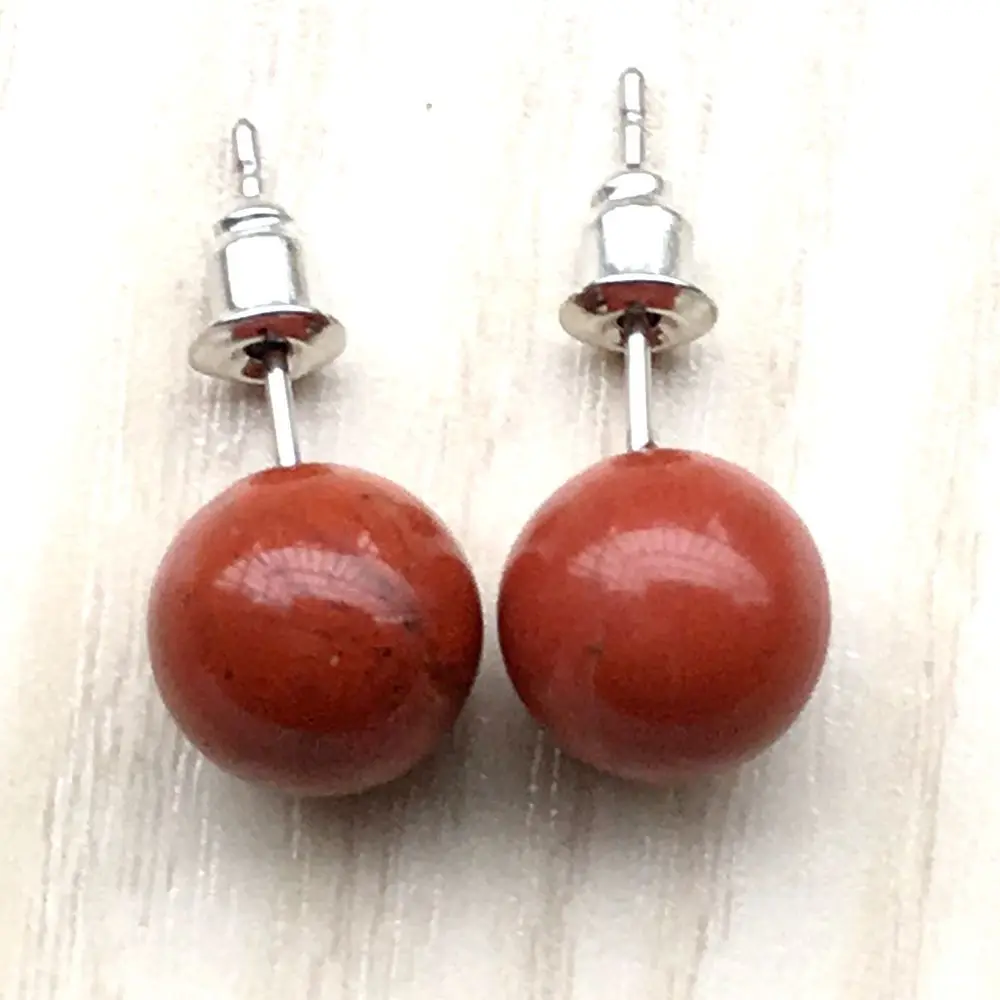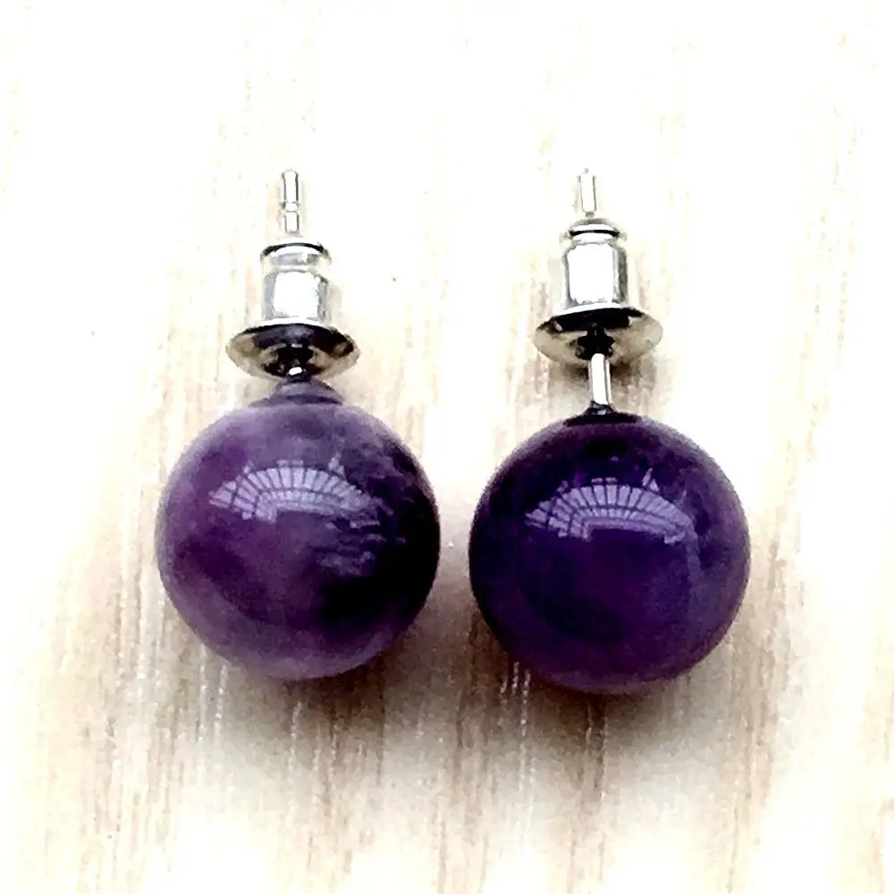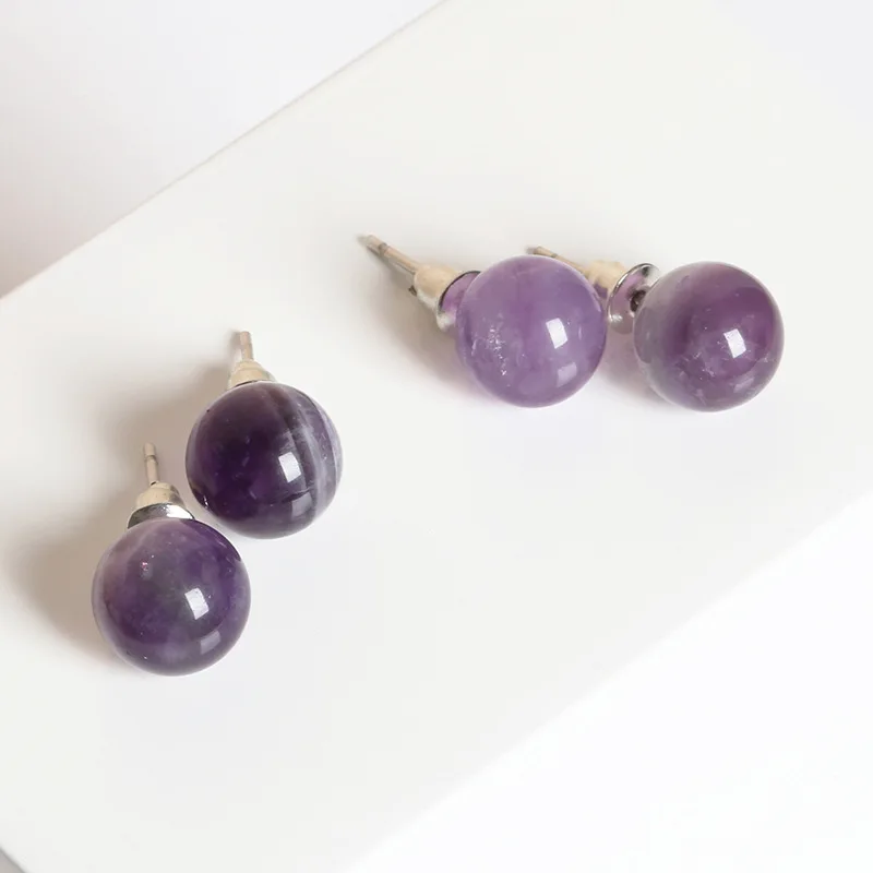 10 pairs Natural Stone Earrings Healing Crystal Quartzs Round Ball Beads Steel Stud Fashion Ear Jewelry for Women Girl Wholesale