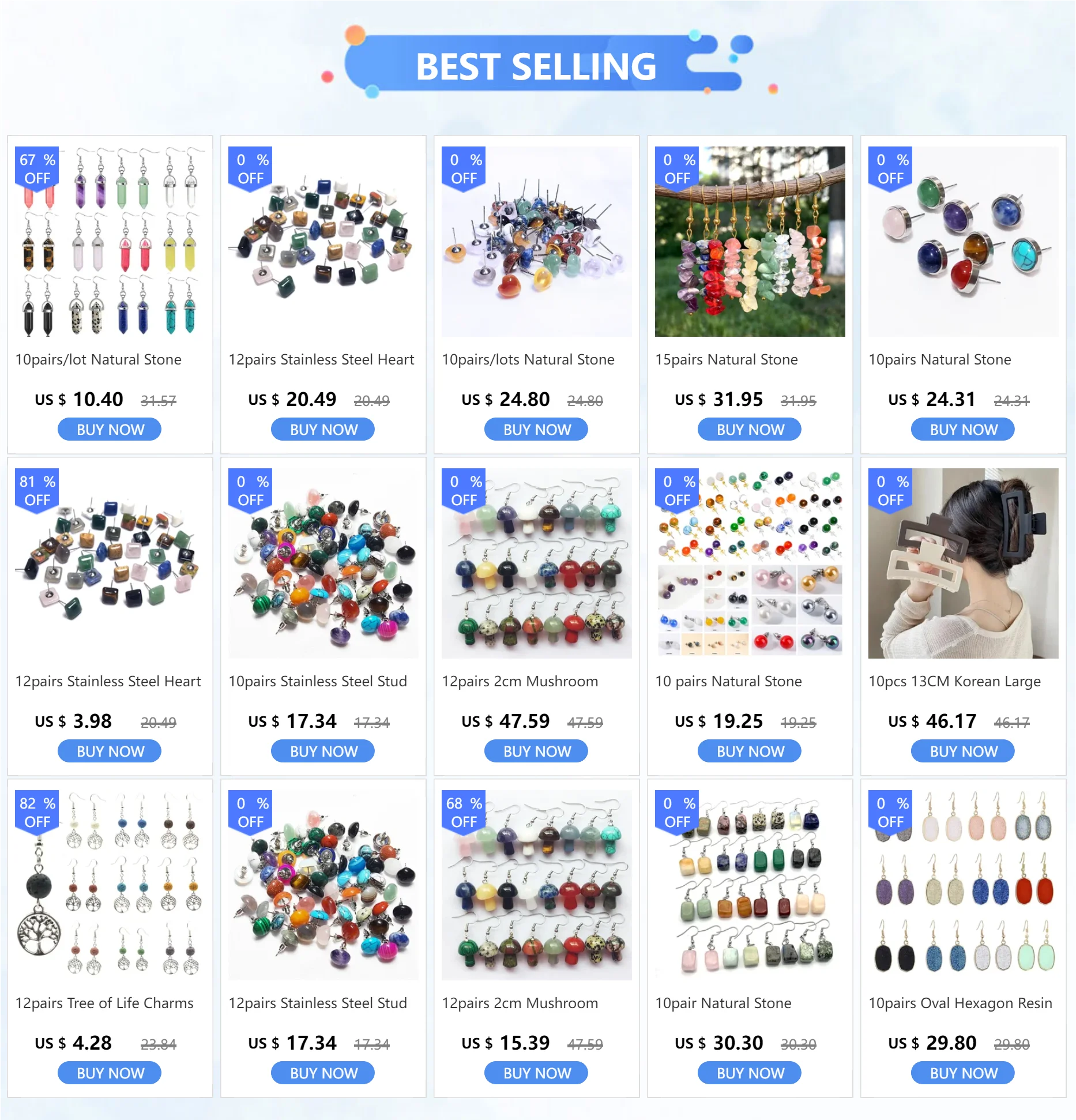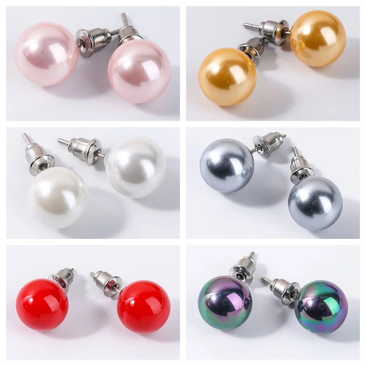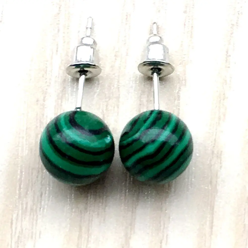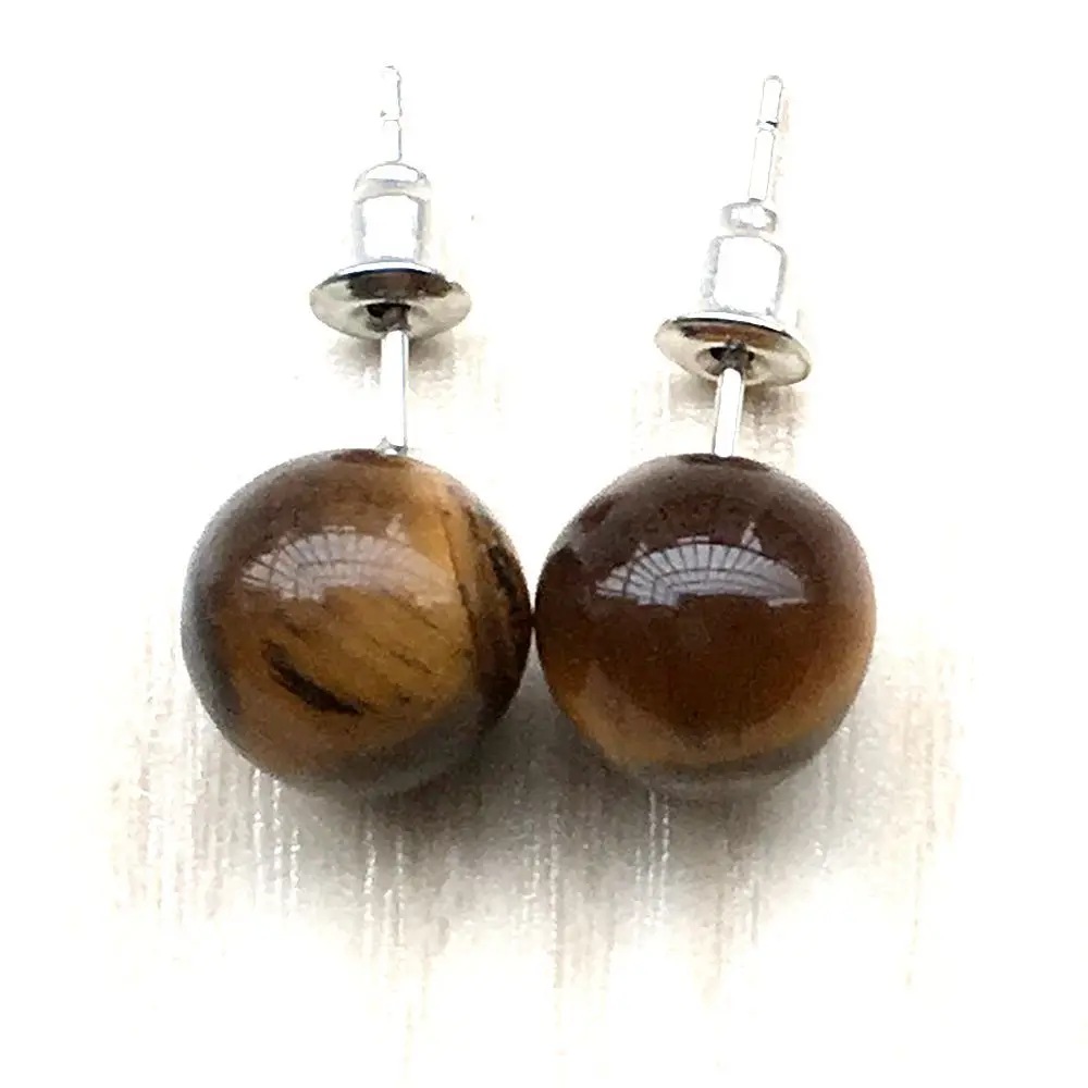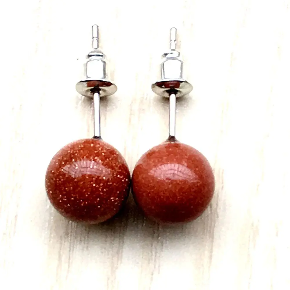 10 pairs Natural Stone Earrings Healing Crystal Quartzs Round Ball Beads Steel Stud Fashion Ear Jewelry for Women Girl Wholesale