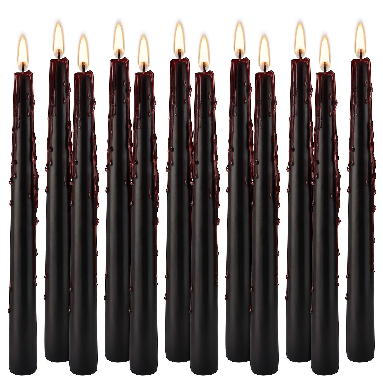 12pcs Black Teardrop Tall Taper Candles, Drip-free, Smoke-free, Fragrance-free, Home Dinner Candles, Hand-poured, Premium Quality, Suitable For Church, Home, Wedding, Party, Seasonal Celebrations, Emergencies And Home Decorat