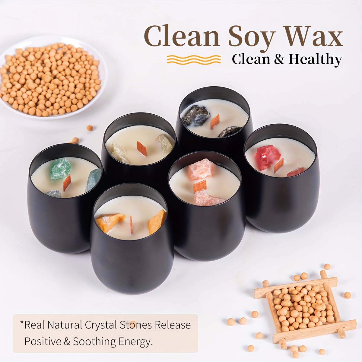 13pcs Gifts Set, 6 Scented Candles Set + 6 Pads + 1 Gift Box, Natural Crystals Candles Gift Set For Women Men, 60 Oz Soy Wax, Sturdy & Durable, Safe & Healthy, New Home Gift, Gift To Mom, Sister, Female, Men, Aunt, Teacher, H