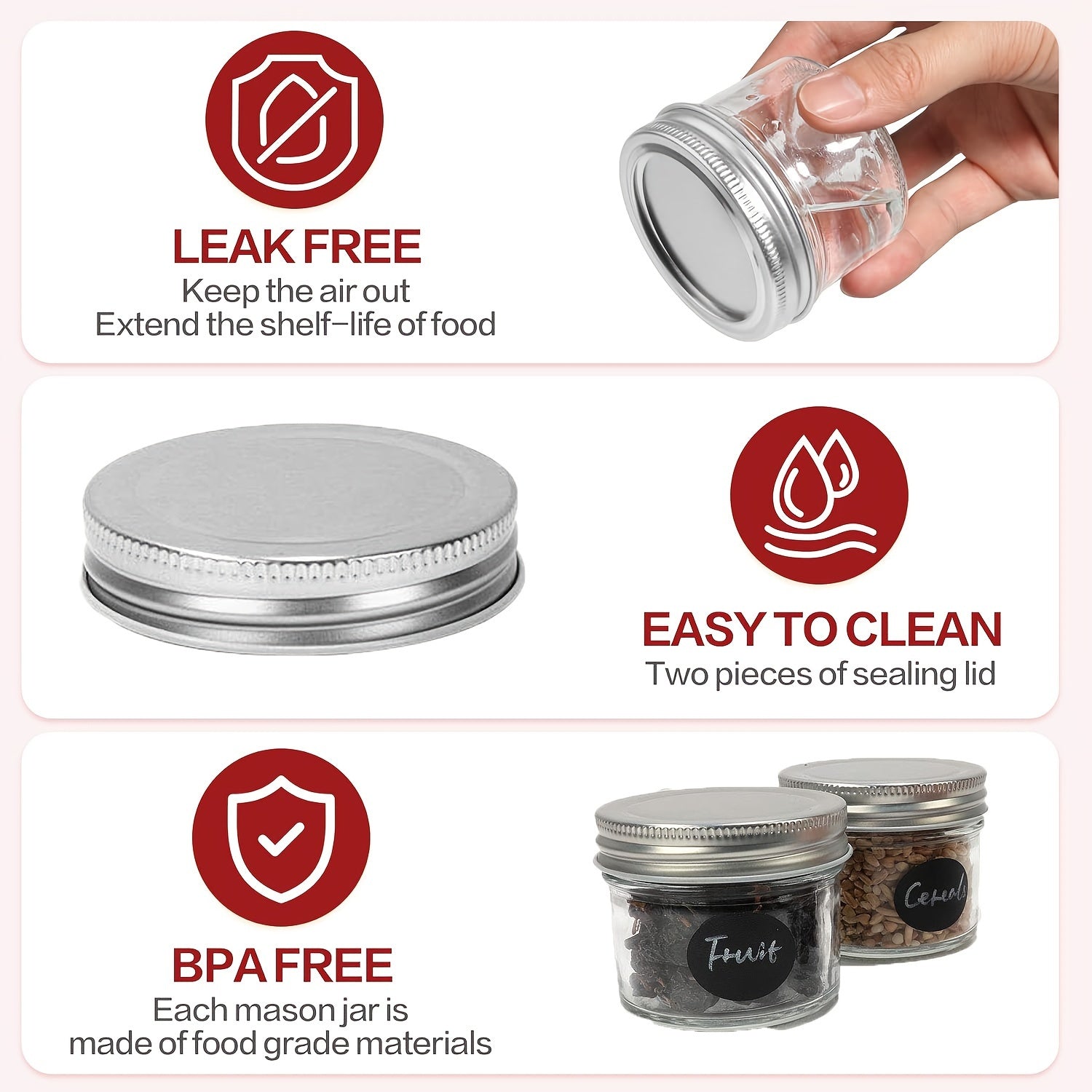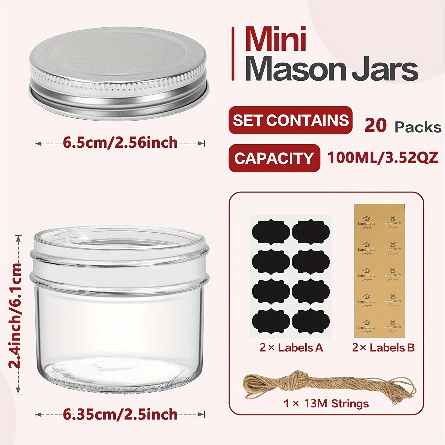 20-Pack 3.38oz Mini Mason Jars with Lids, Reusable Glass Jars with Interchangeable Locking Lids for Honey, Candles, DIY Crafts, Multipurpose Round Containers, Dishwasher Safe, No Electricity Needed