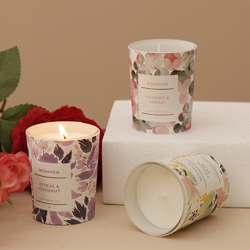 2pcs 2025 New Creative Flower Series Candles - Smokeless Soy Wax, 12+ Hour Burn Time, Floral & Fruit Scented Glass Jar Candles for Home Decor, Christmas, Valentine’s Day, Birthdays & Holidays