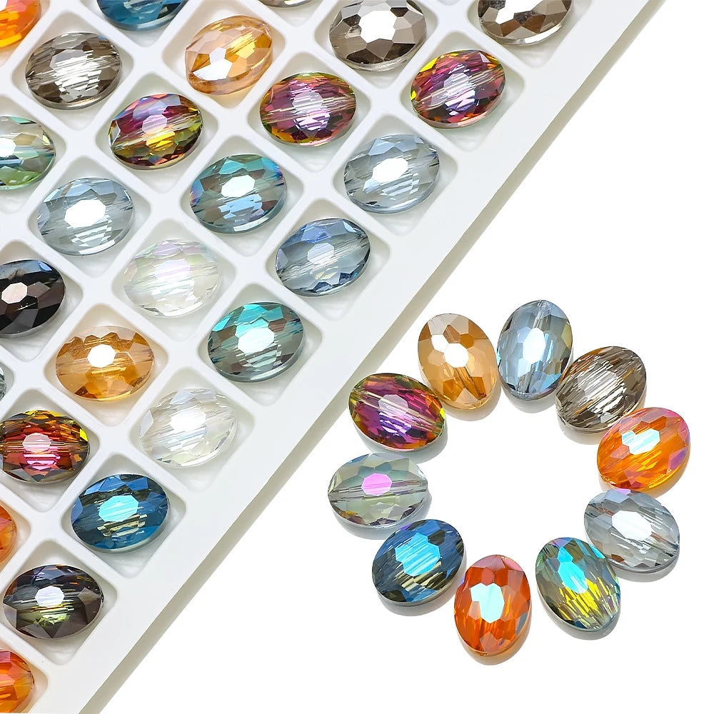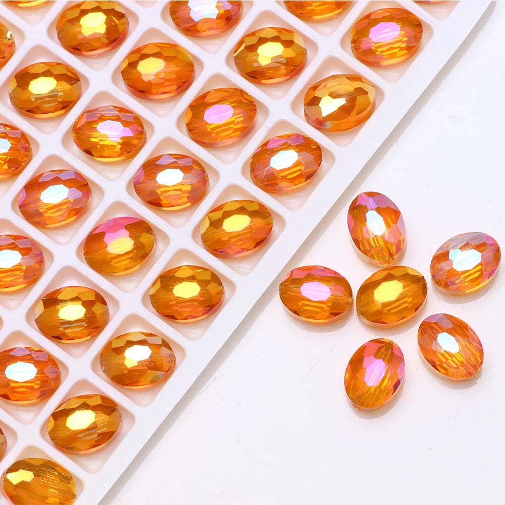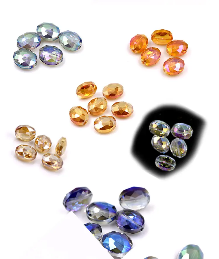 30pcs/lot Oval Glass Flat Beads Bovine Eyes-Shape 9x12mm Natural Stone Faceted Crystal Bead For Making Diy Jewelry Making