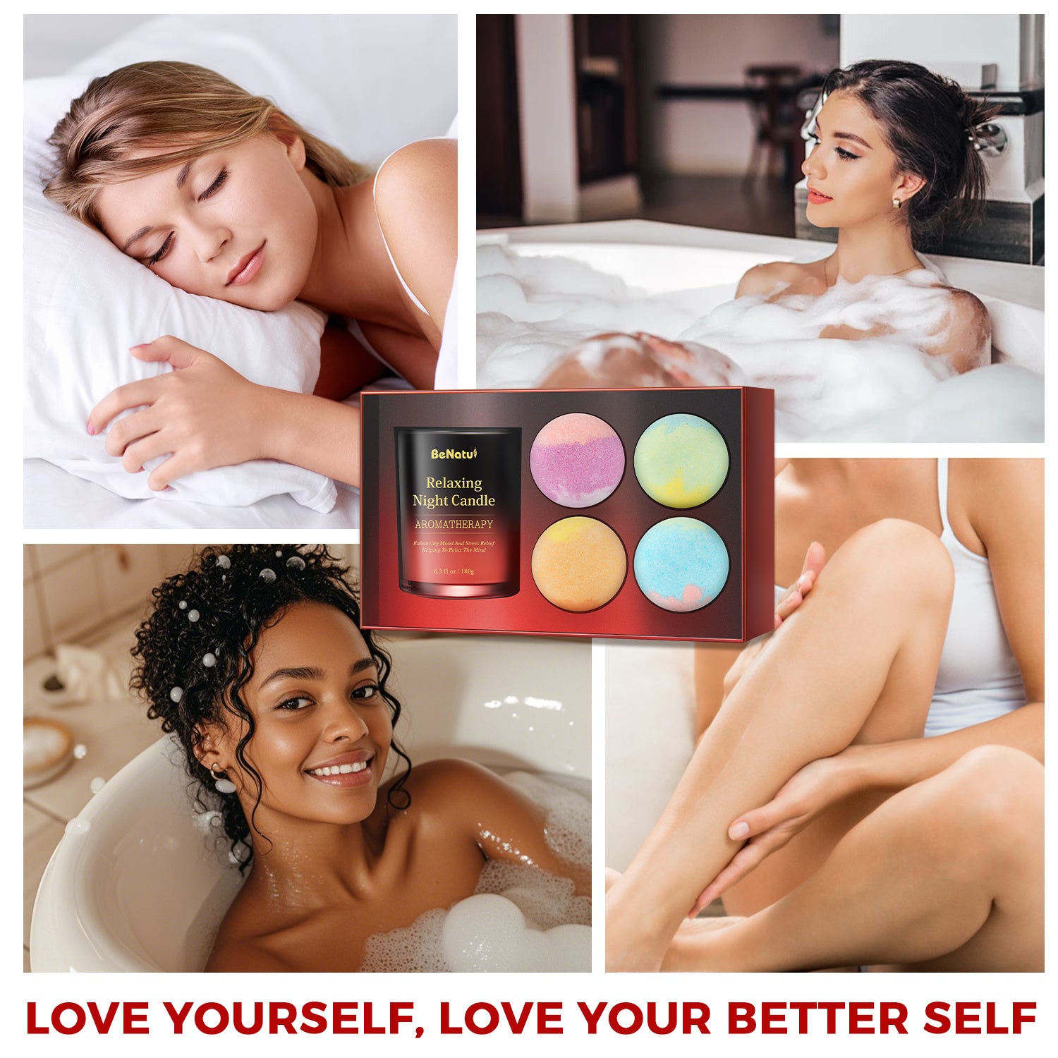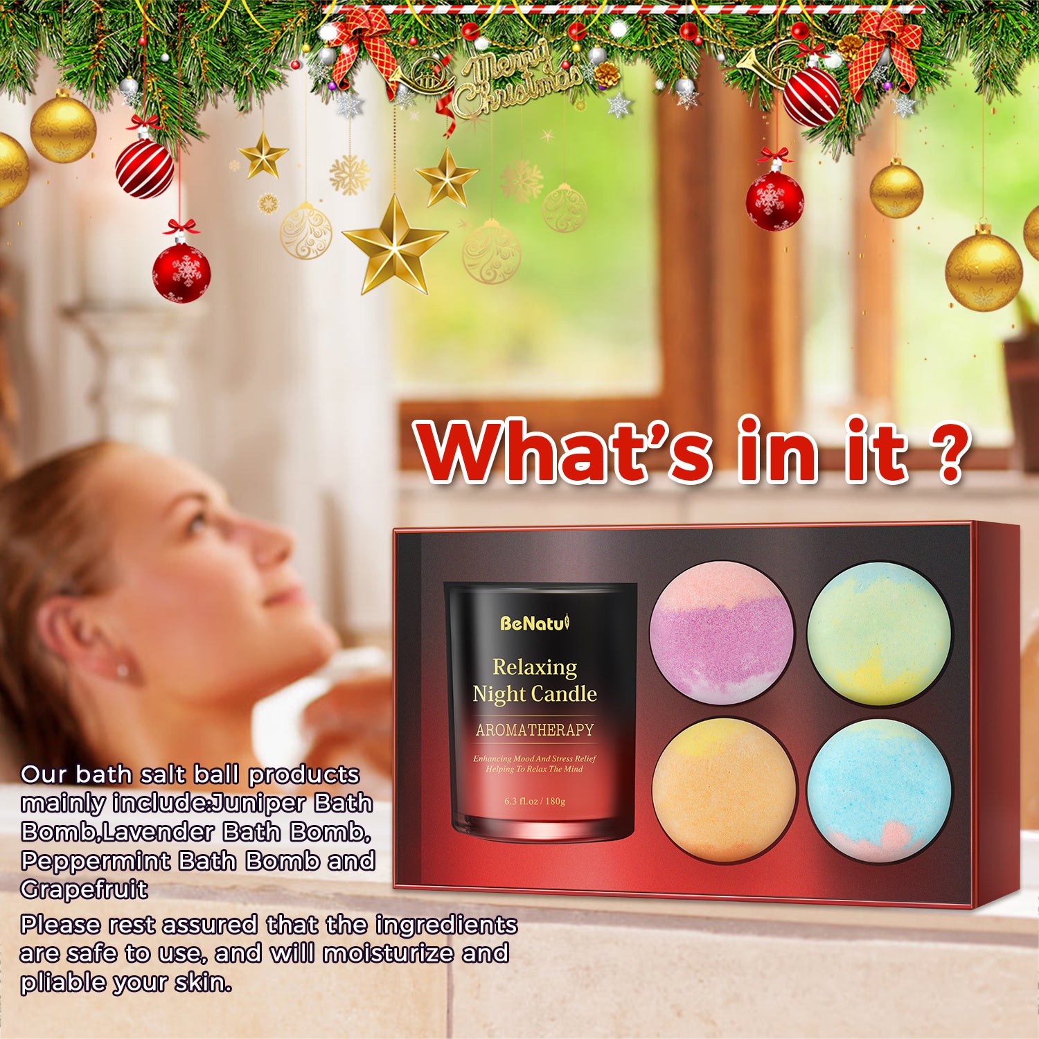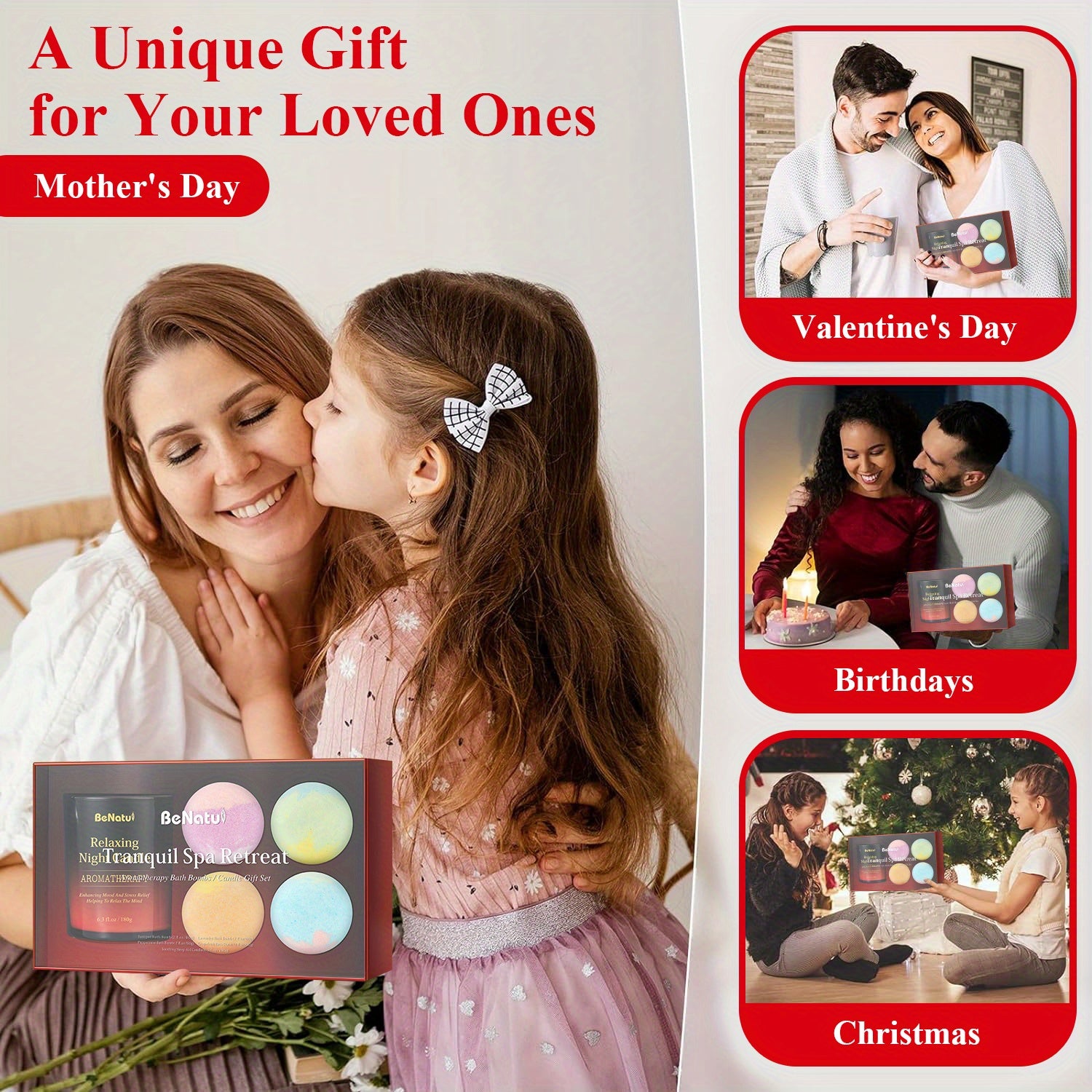 4pcs BeNaturd Spa Retreat Gift Set - Bath Soaking Salt Marbles and Scented Candles, Vegan, No Additives, Wholefood Ingredients, Ideal for Christmas, New Year, Valentine'S Day, Housewarming, Wedding, Bridal Shower, Anniversary
