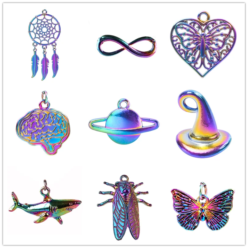 5Pcs Dreamcatcher Infinity Symbol Rainbow Color Charms Witch Hat Saturn Planet Love Butterfly Brain Fashion Pendant Diy Jewelry