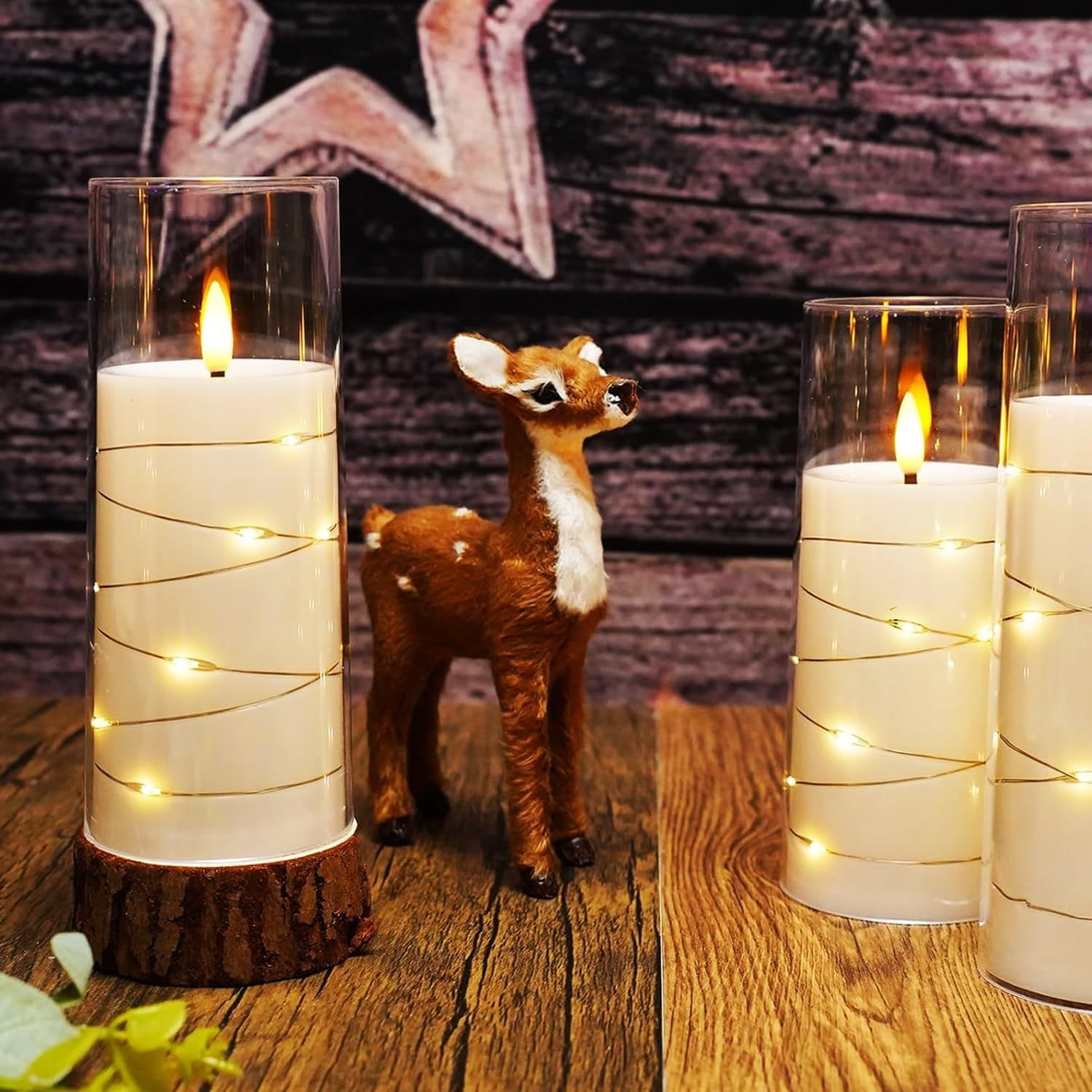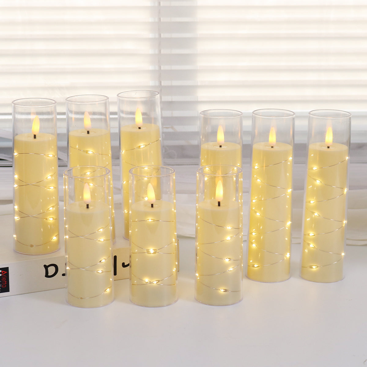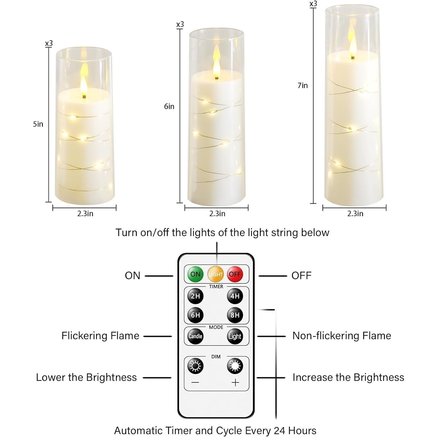 9/12 Flickering Flameless LED Electronic Candles Embedded Star String Lights Acrylic LED Pillar Candle with Remote Control Suitable for Home Decoration Halloween Christmas Decoration to create an ambience Christmas Gifts Vale