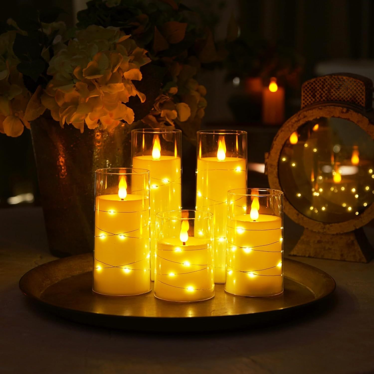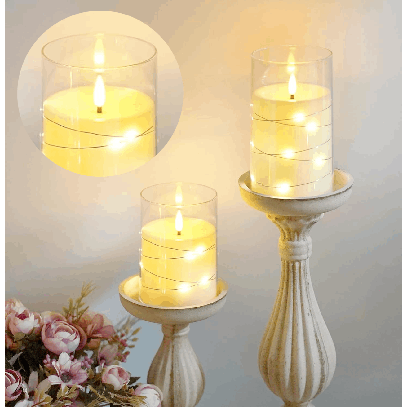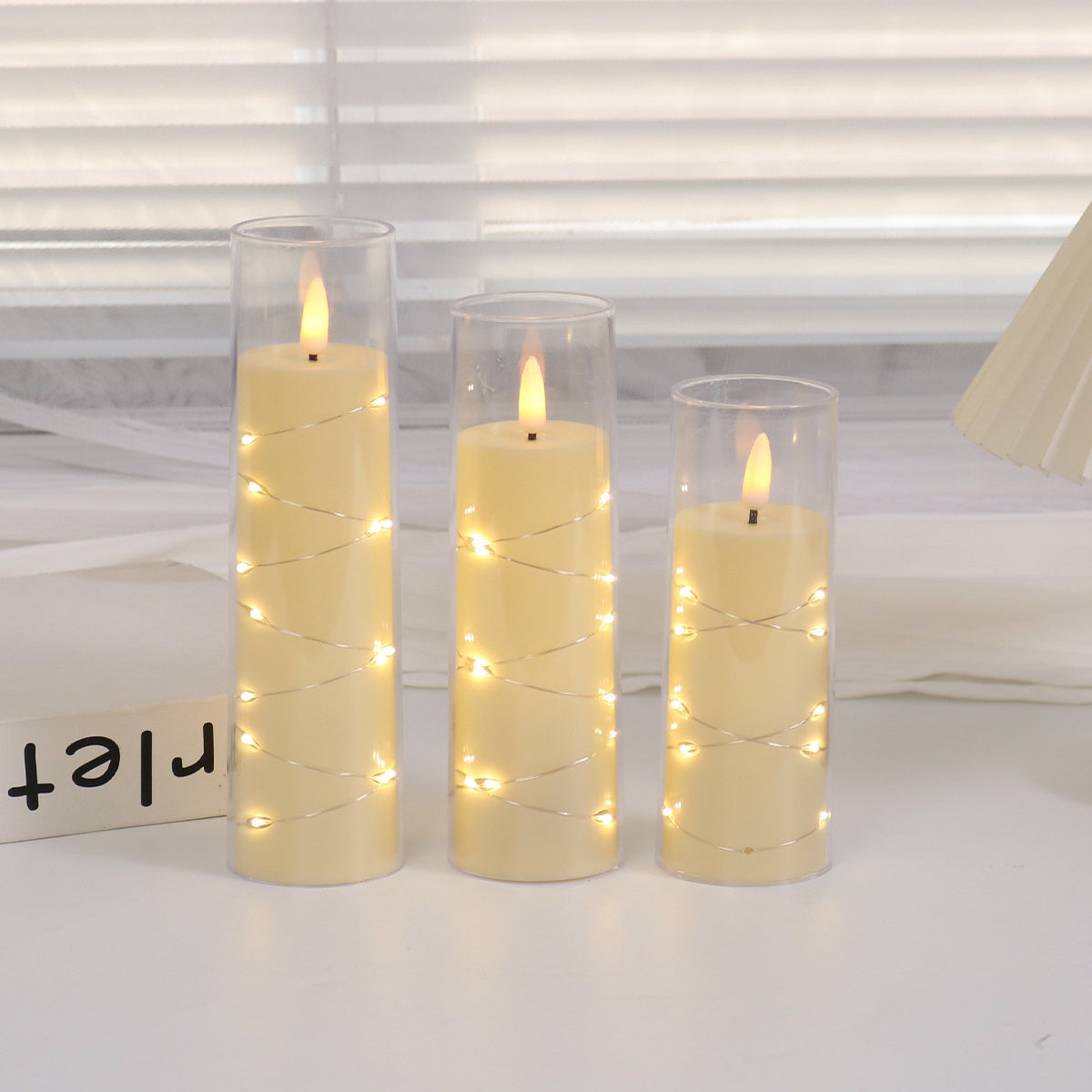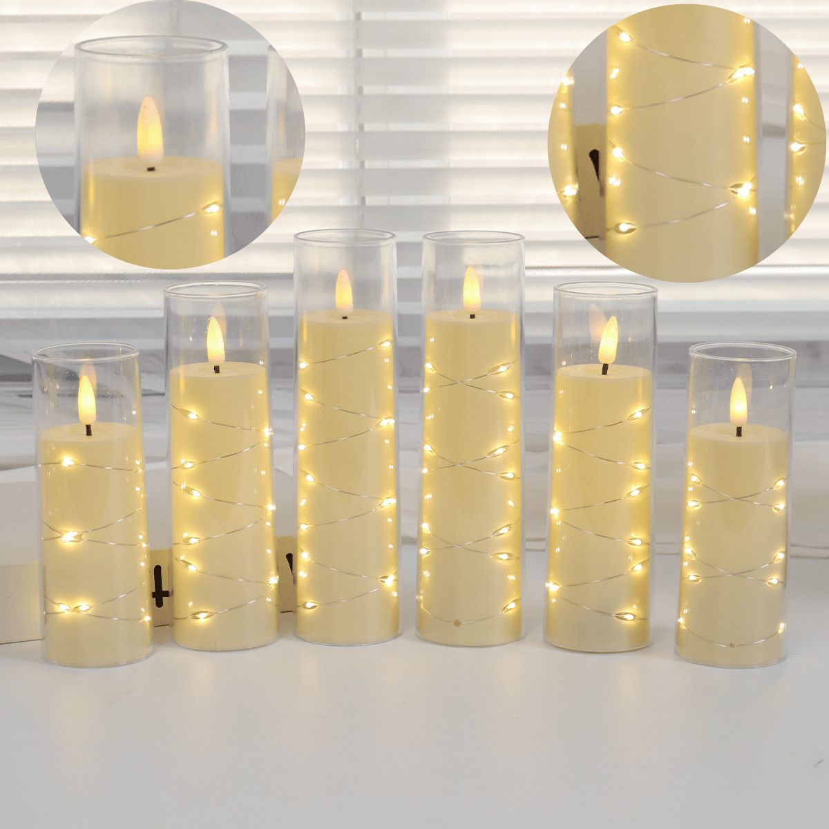 9/12 Flickering Flameless LED Electronic Candles Embedded Star String Lights Acrylic LED Pillar Candle with Remote Control Suitable for Home Decoration Halloween Christmas Decoration to create an ambience Christmas Gifts Vale