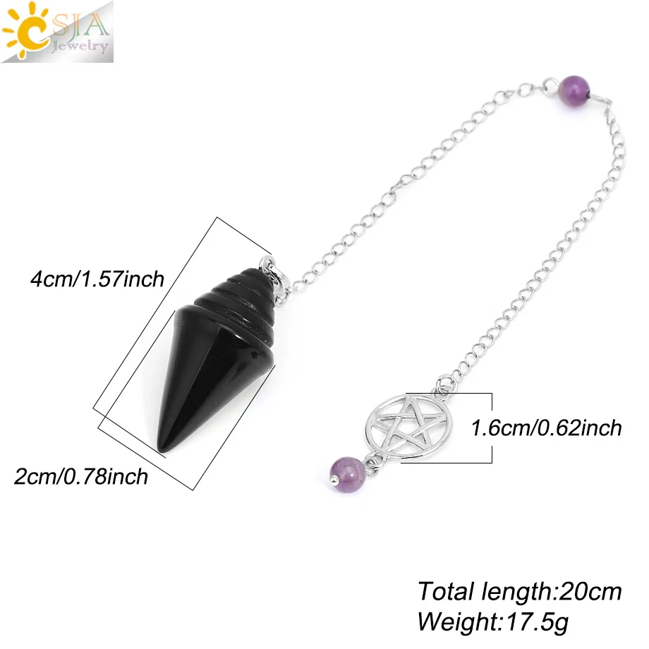 Pendulum Feature: Natural Stone , Stupa Cone Shape , Silver-color Chain , Copper Chain