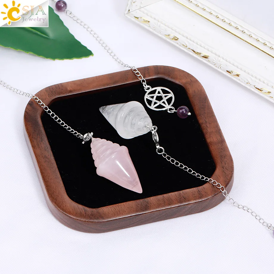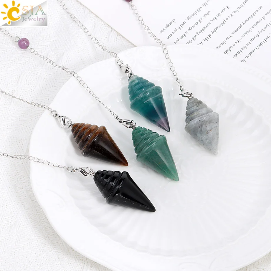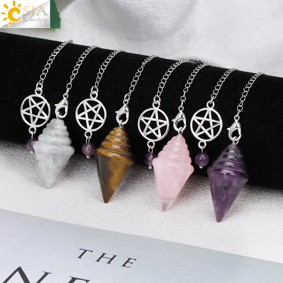 Crystal Stupa Pendulum for Dowsing Divination Witchcraft Reiki Natural Stone Fluorite Amethysts Pendant Spiritual Pendulos H478