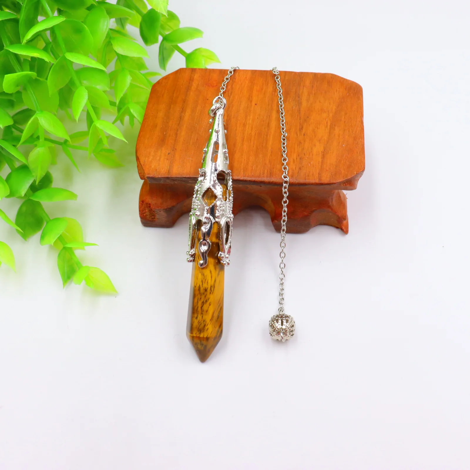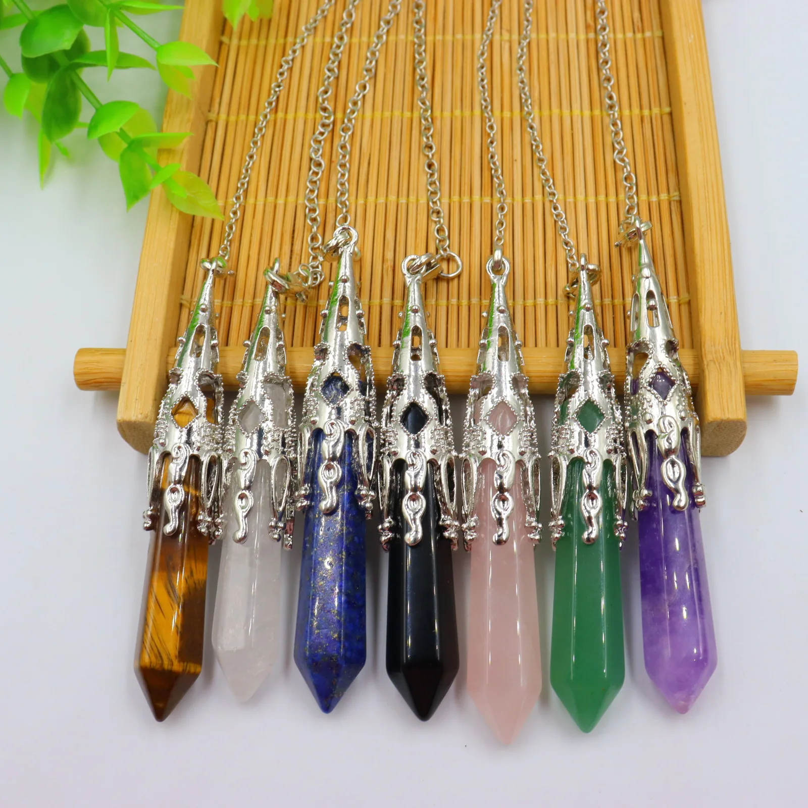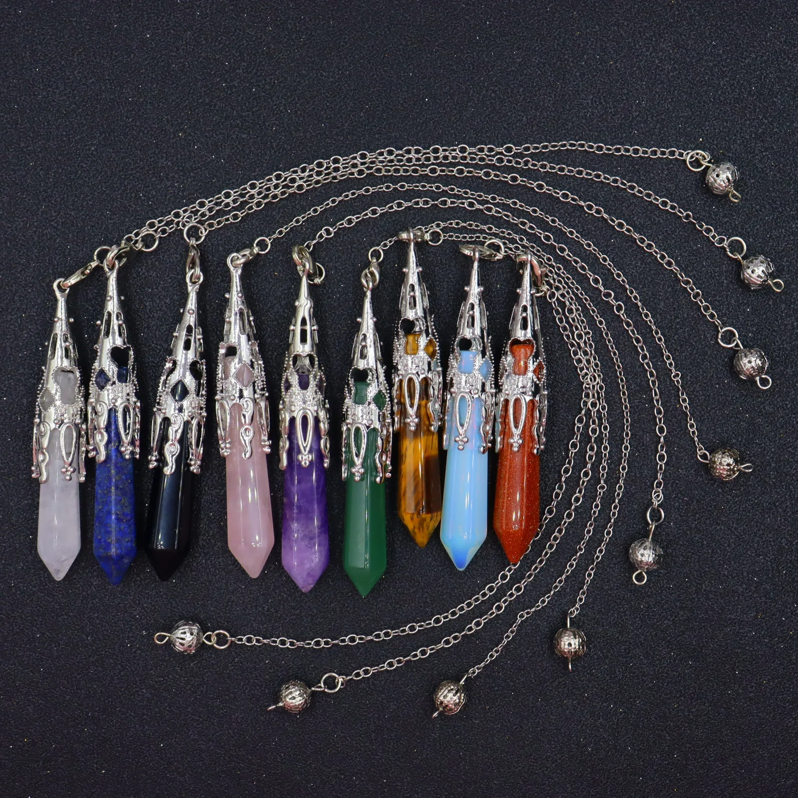 Energy Natural Stone Pendant Crystal Pendulum Amethysts Rose Clear Quartz Black Obsidian Tiger Eye Healing Reiki Pendulos X205