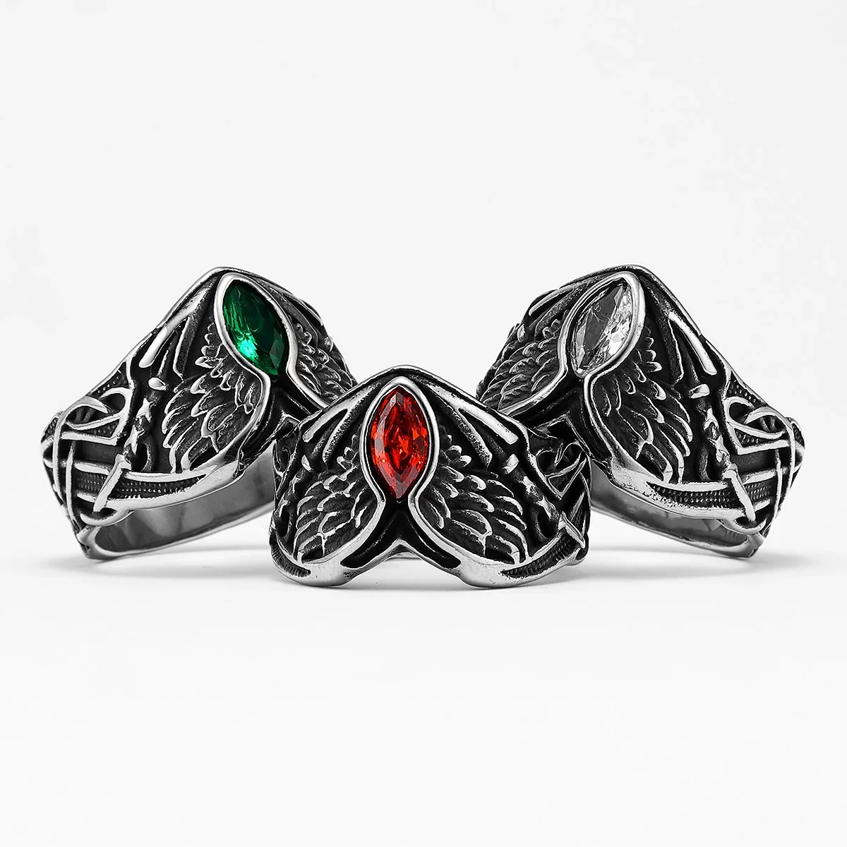 Fallen Angel Wings Gems Stone Men Rings Stainless Steel Retro Punk Rock Gothic Women Fashion Jewelry Accessories Gift Wholesale
