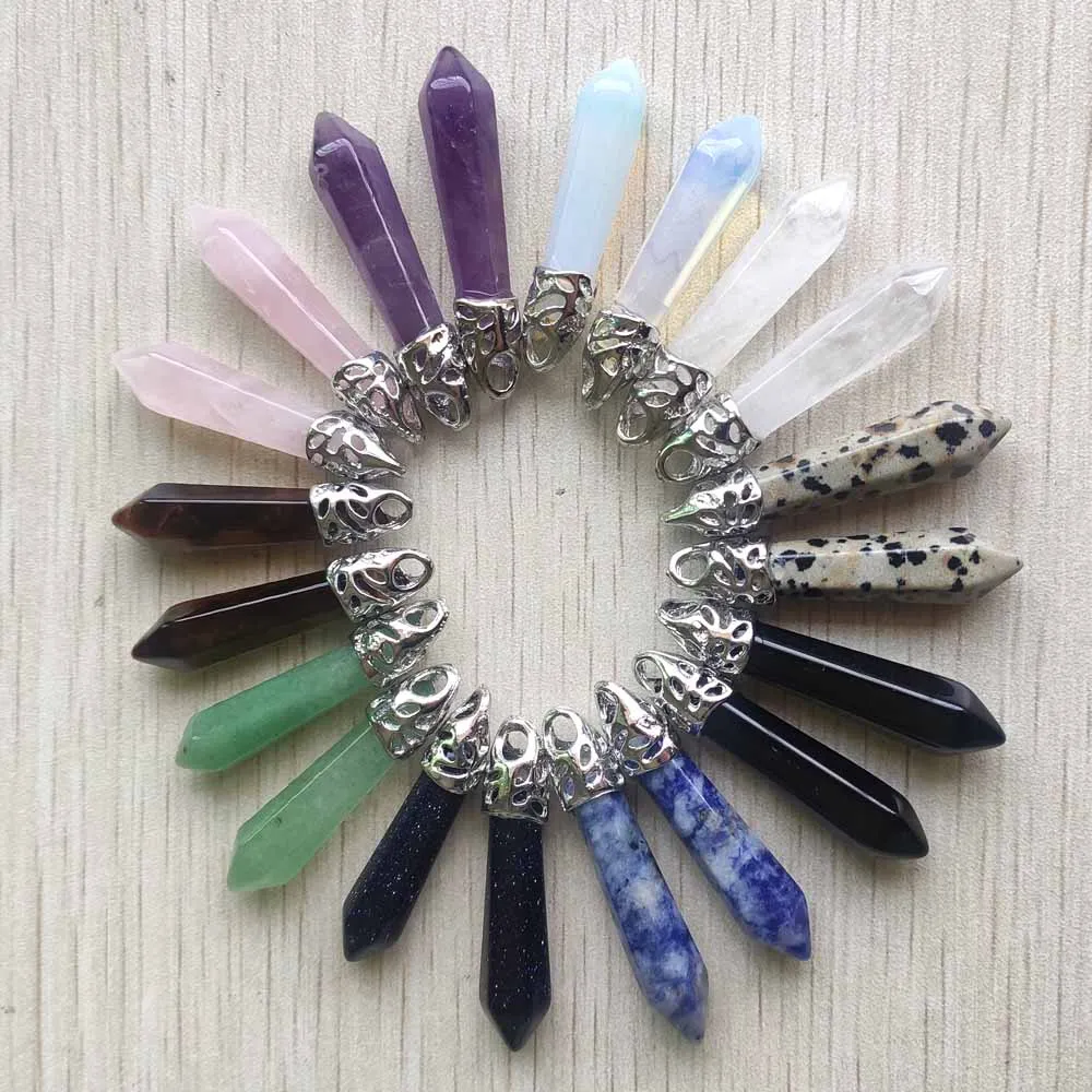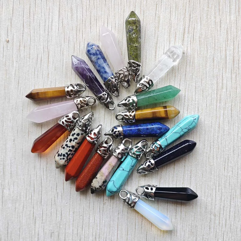 Fashion good quality Mix natural stone Hexagonal pillar pendants for necklaces jewelry making 20pcs/lot wholesale fast shipping