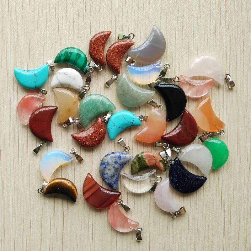 Good quality mix natural stone tiger eye white crystal moon shape pendants for jewelry making Wholesale 50pcs/lot