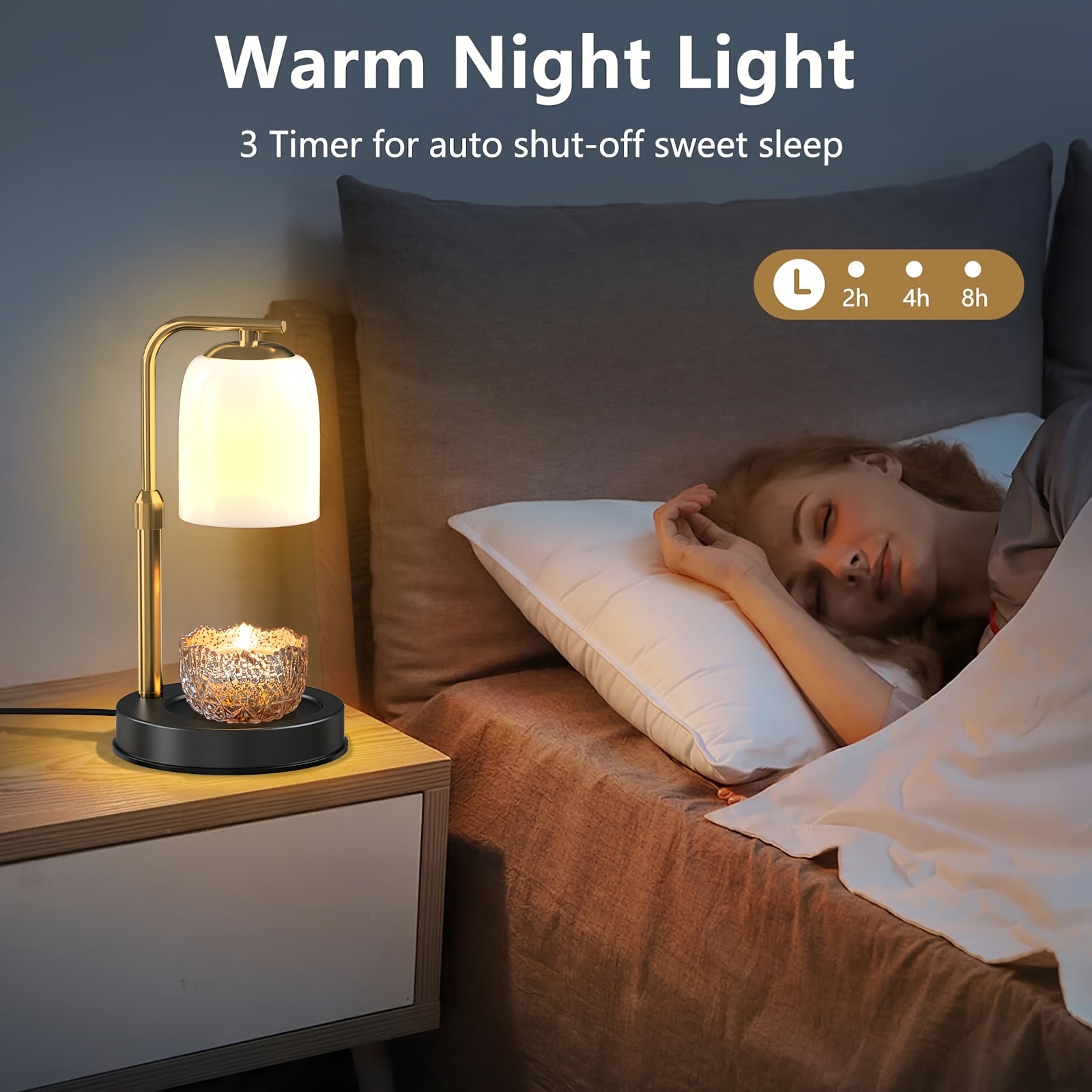 VERSATILE CANDLE LAMP - With a frosted glass shade and adjustable stand, this stylish lamp fits candles up to 8 inches. It serves as both a candle warmer and bedside lamp, elevating your sleep experience.