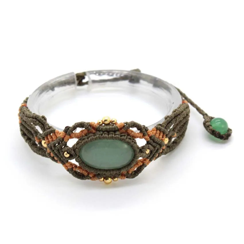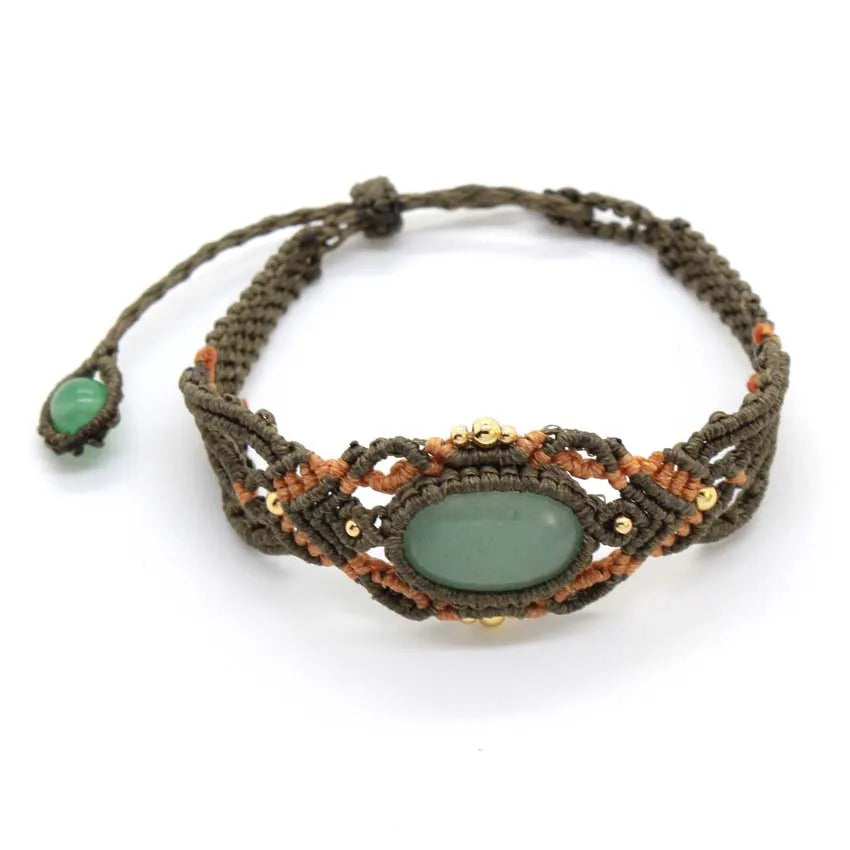 KFT Natural Green Aventurine Oval Shape Hand Thread Rope Wrapped Braided Macrame Stone Bracelets Jewelry For Women Girls Gift