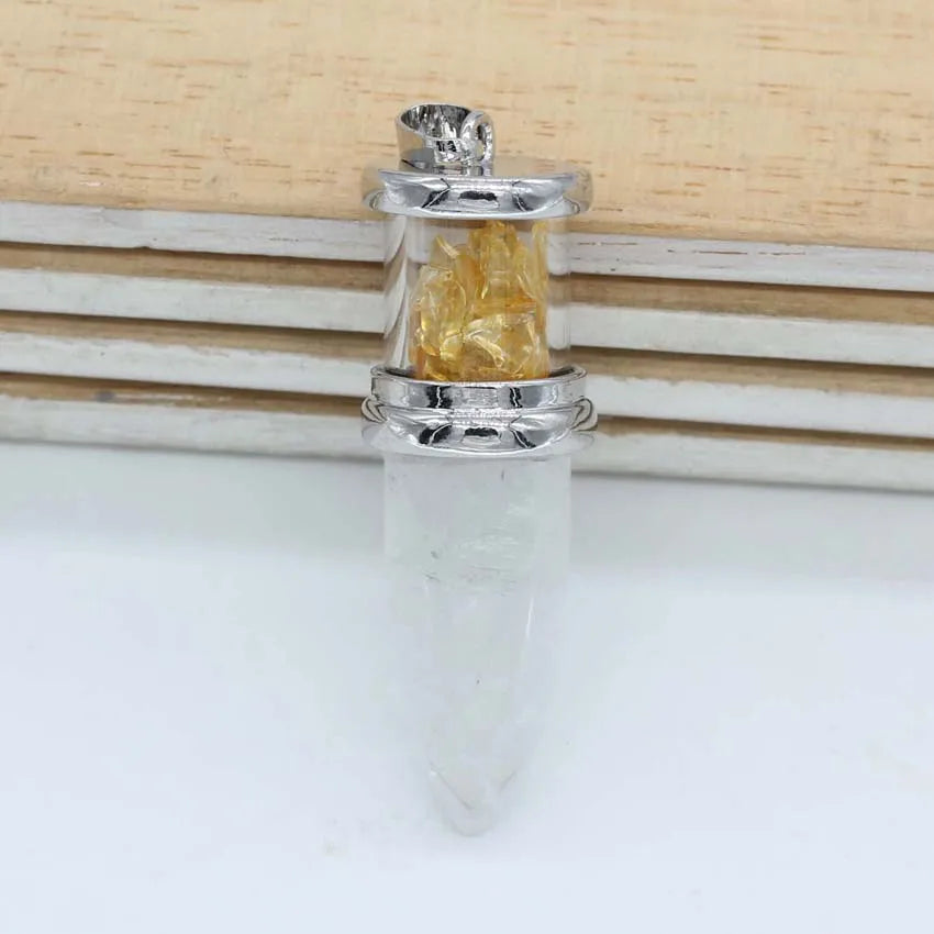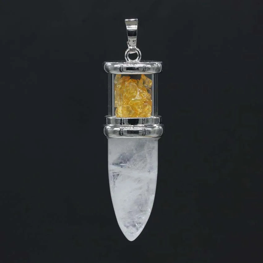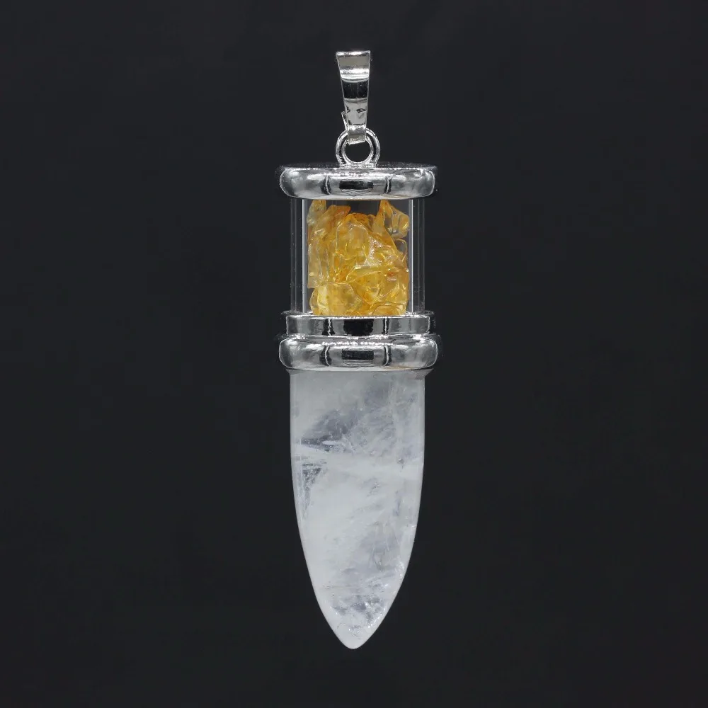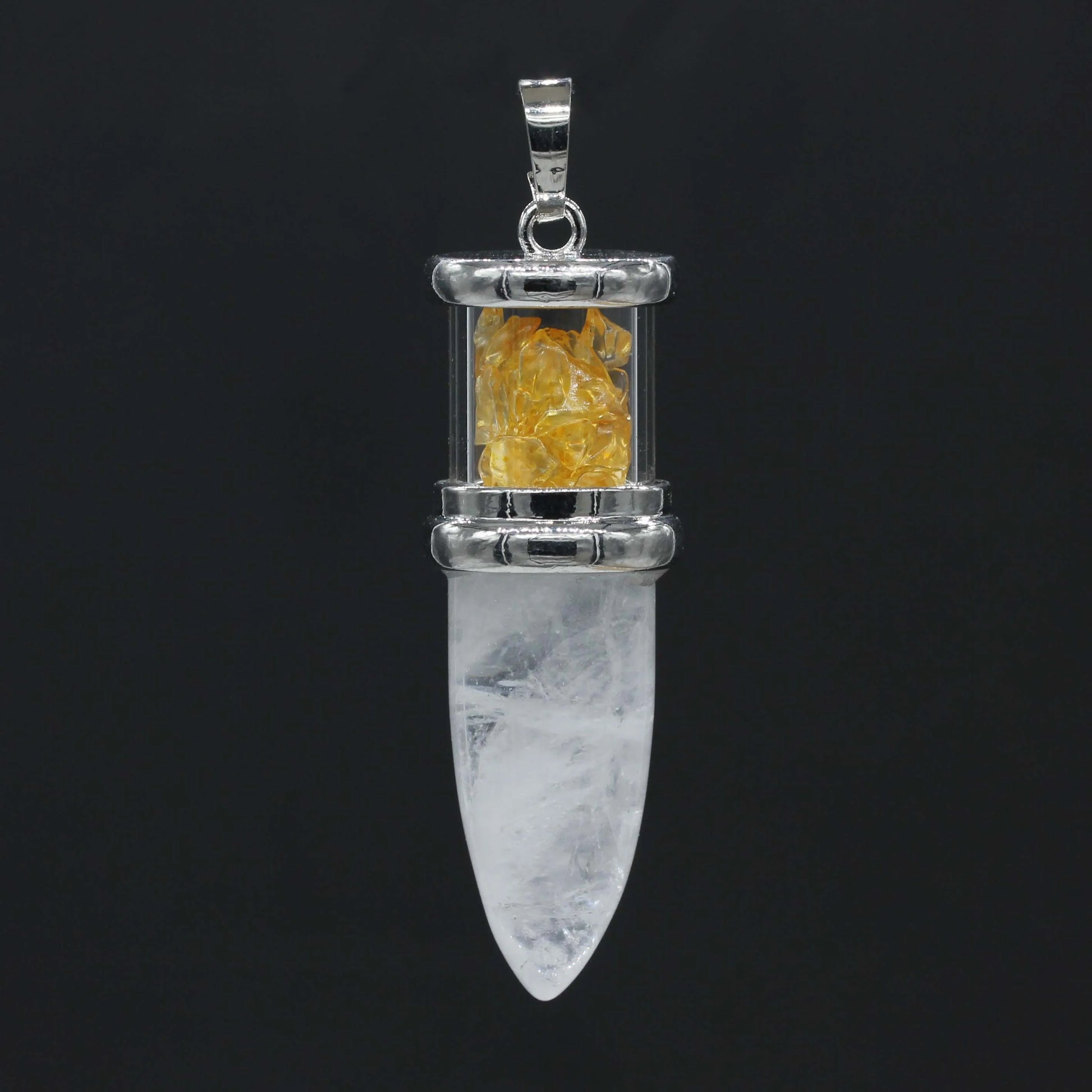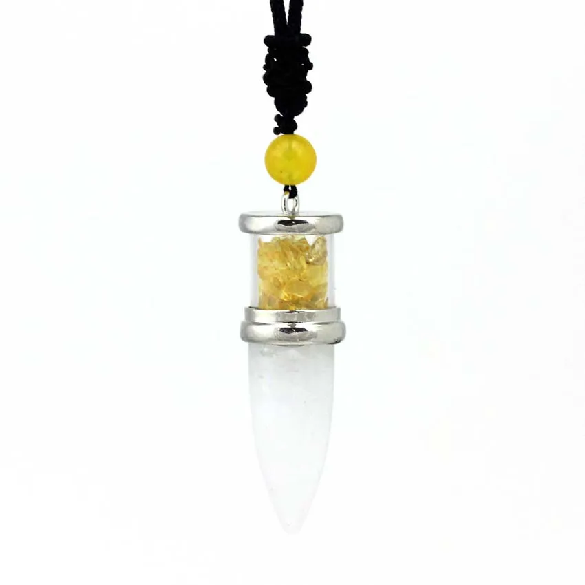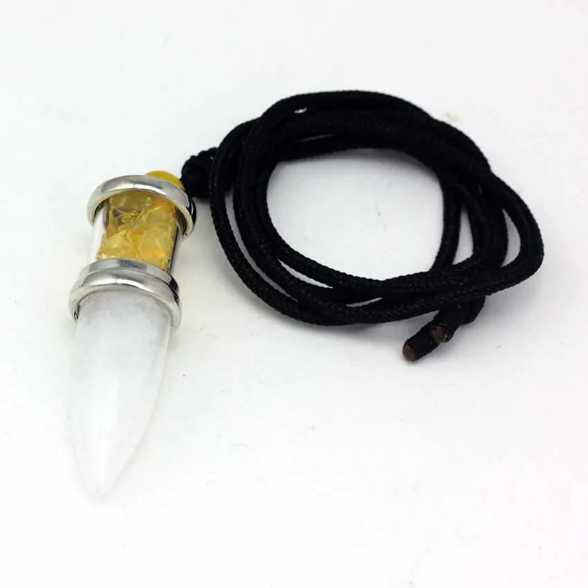 KFT Natural Healing Crystal Quartz Reiki Stone Necklace Rock Citrines Bullet Shape Pendulum Stone Pendant Jewelry For Women Men