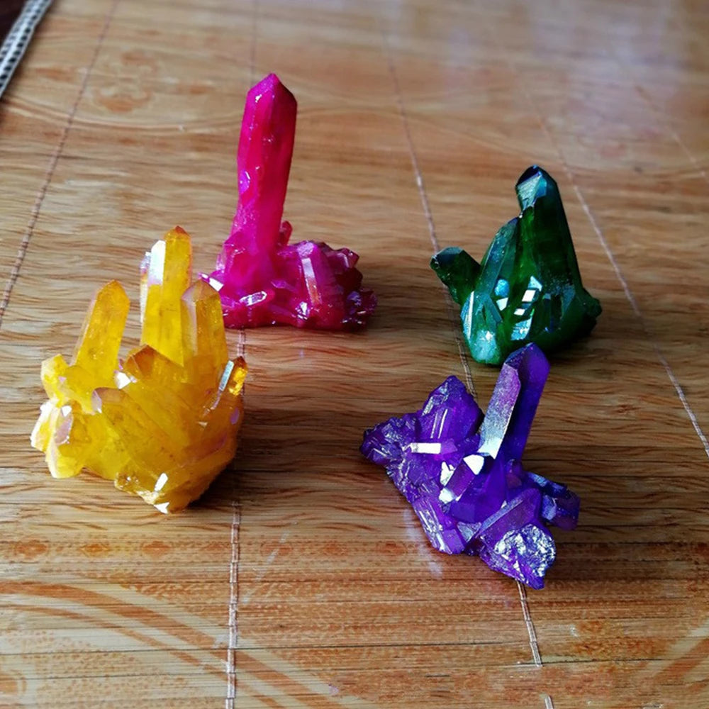 Natural Beautiful White Crystal Raw Quartz Cluster Plating Colorful Mineral Specimen Healing Ornaments