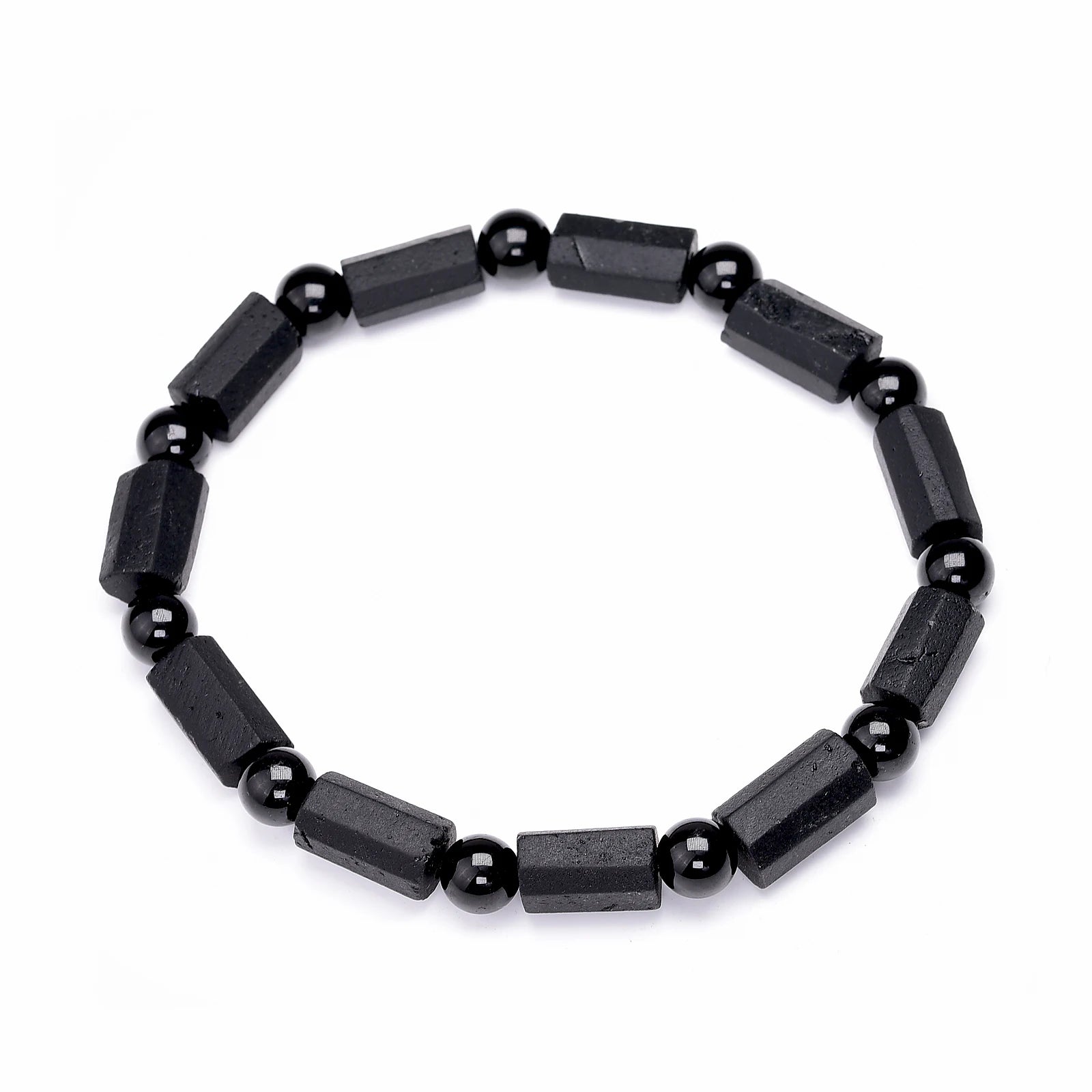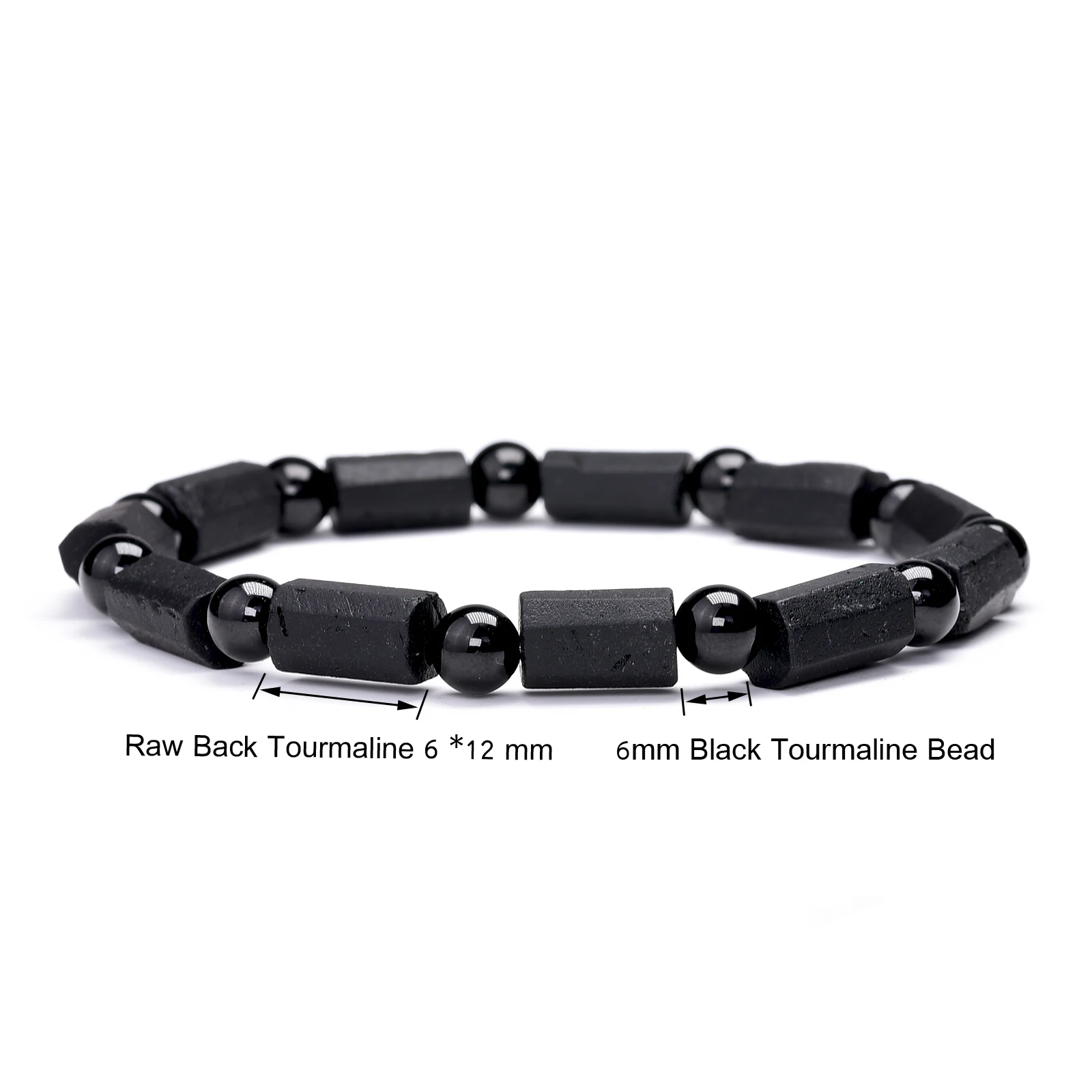 Natural Black Tourmaline Bracelet for Women and Men Raw Crystals Original Energy Quartz Stones Beads Bracelets 6*12mm