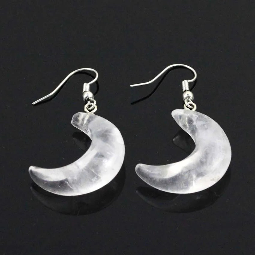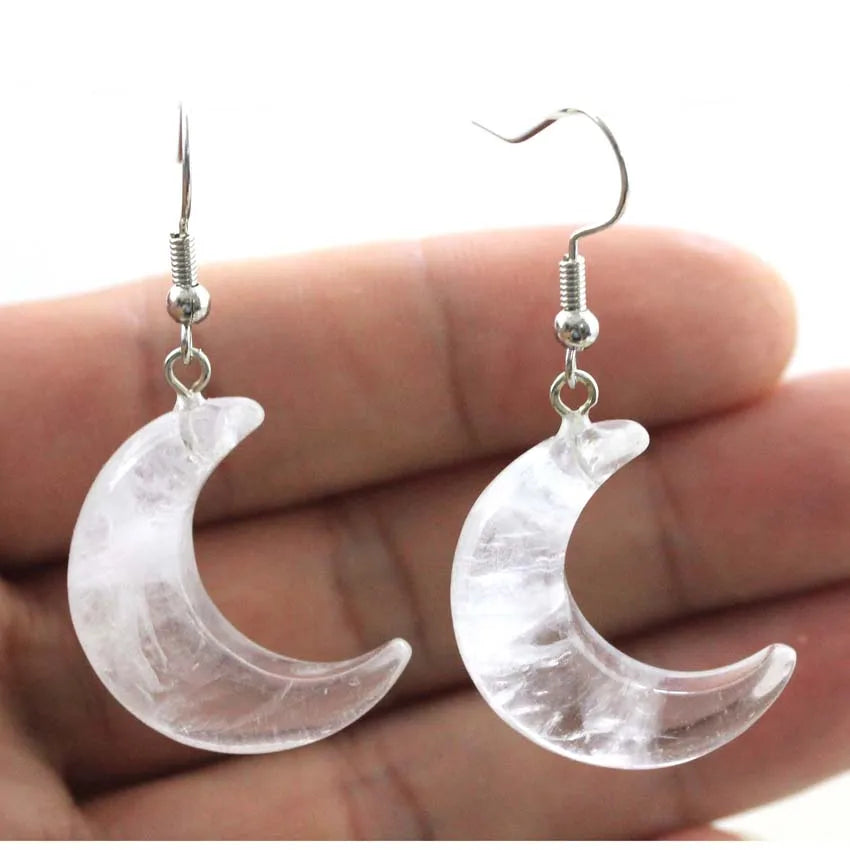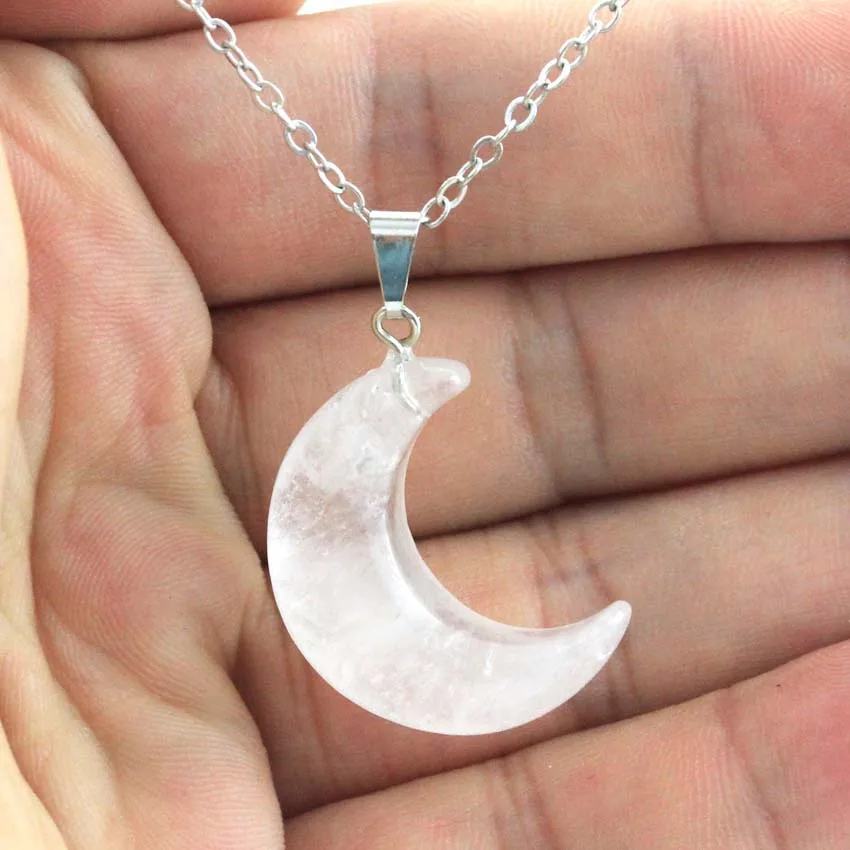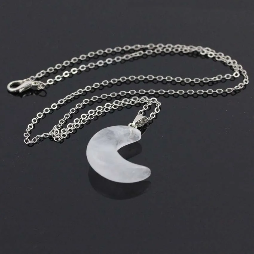 Natural Crystal Stone Crescent Moon Pendant Healing Crystals Quartz Reiki Dangle Hook Earrings Pendant Necklace For Women Girls