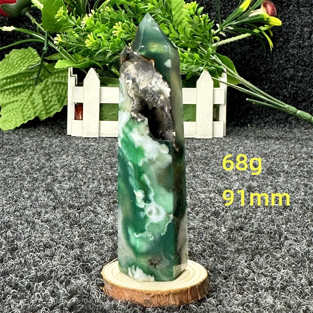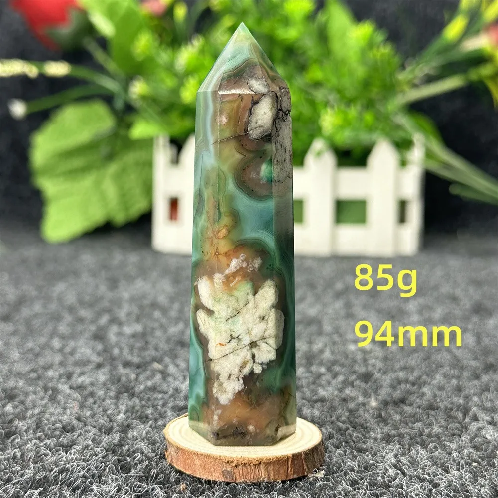 Natural Green Cherry Blossom Agate Crystal Energy Wand, Healing Reiki, spiritual, Feng Shui, prayer Witchcraft, Home Decoration
