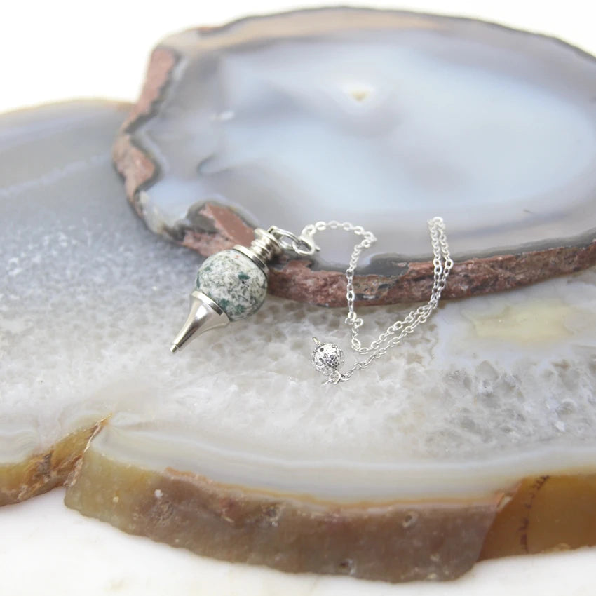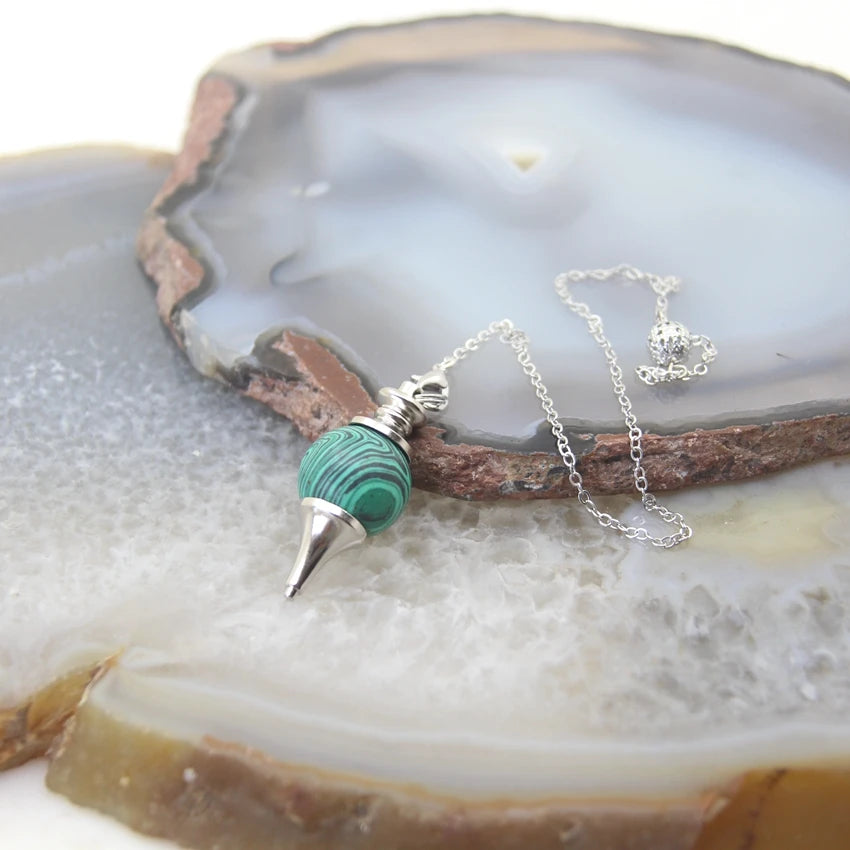 Natural Rose Quartz Labradorite Pendulum for Dowsing Divination Round beads Stone Crystal Cone Pendants pendulos Jewelry