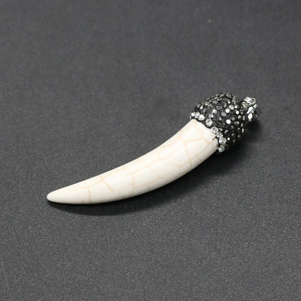 Natural Stone Pendant wolf's tooth shape inlaid with Crystal for Women Jewelry Making Necklace Accessories Reiki Healing Gift