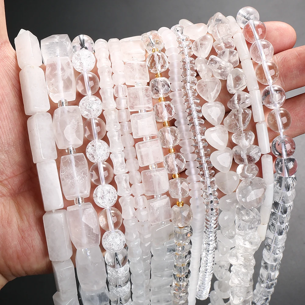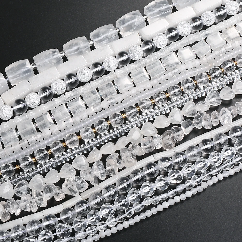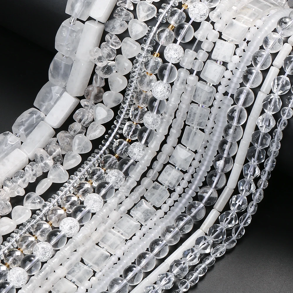 Natural Stone White Crystals Round Faceted Irregular Loose Spacer Beads For Jewelry DIY Bracelet Necklace Making Accessories