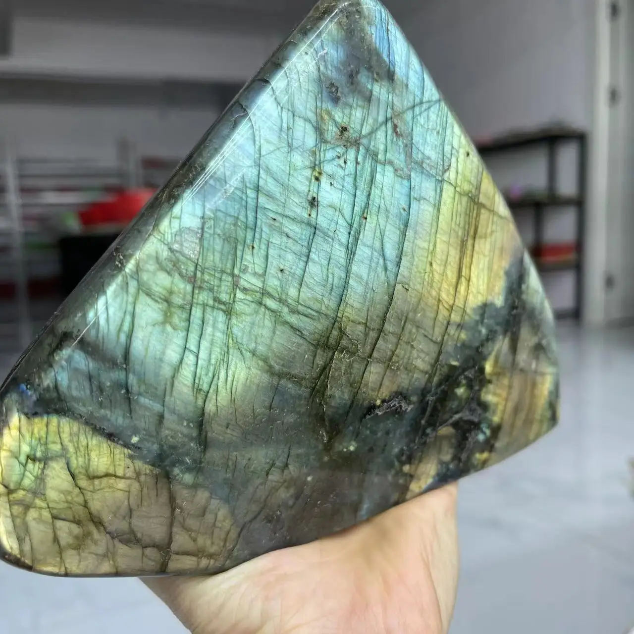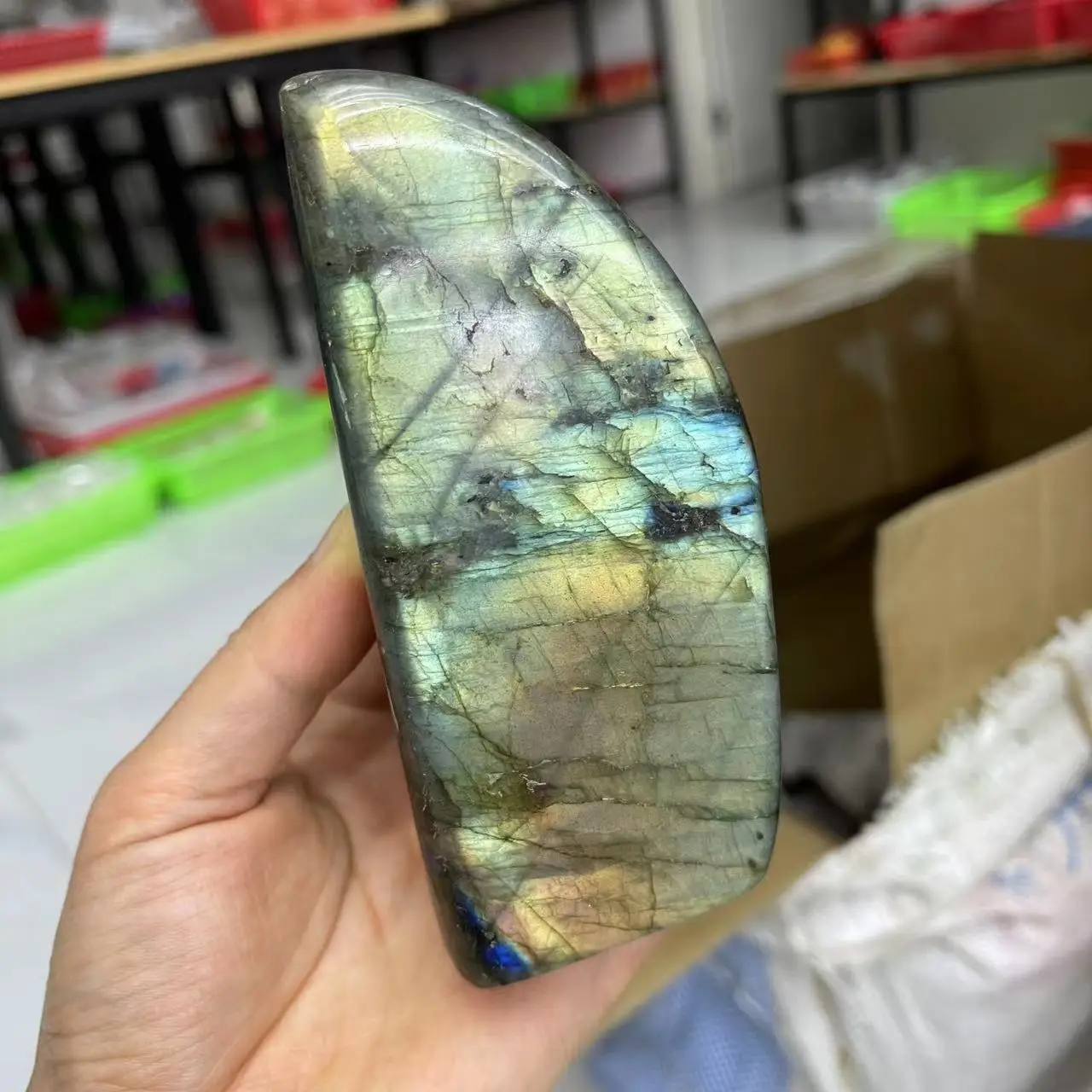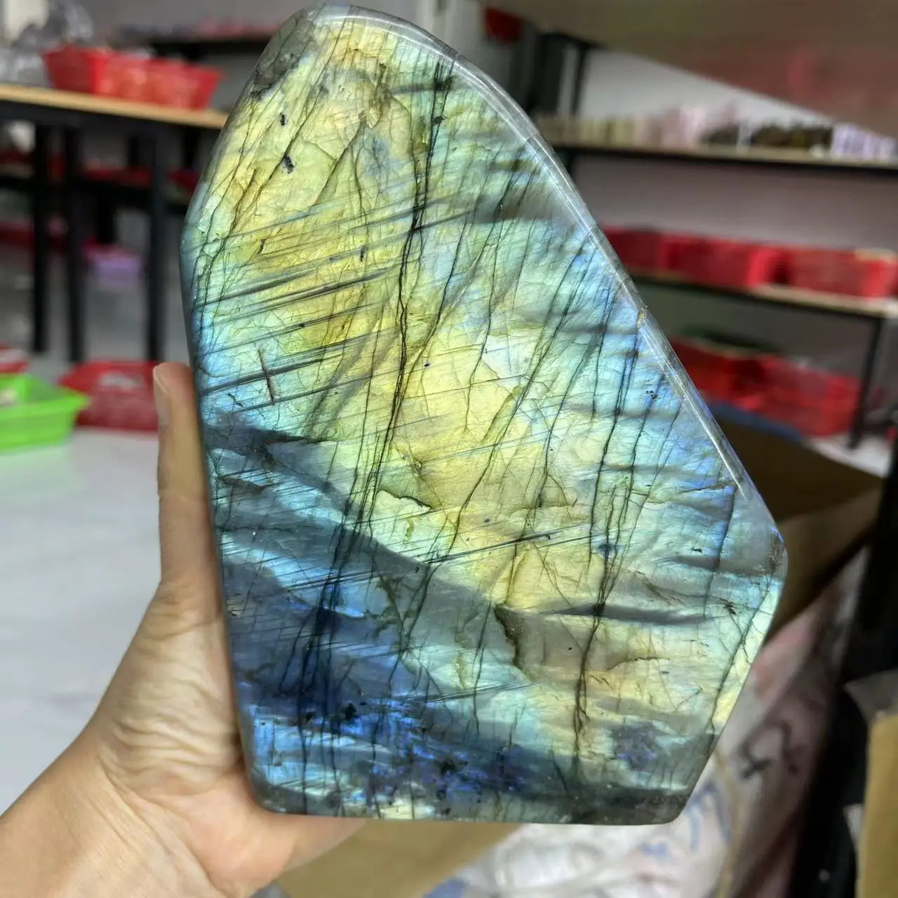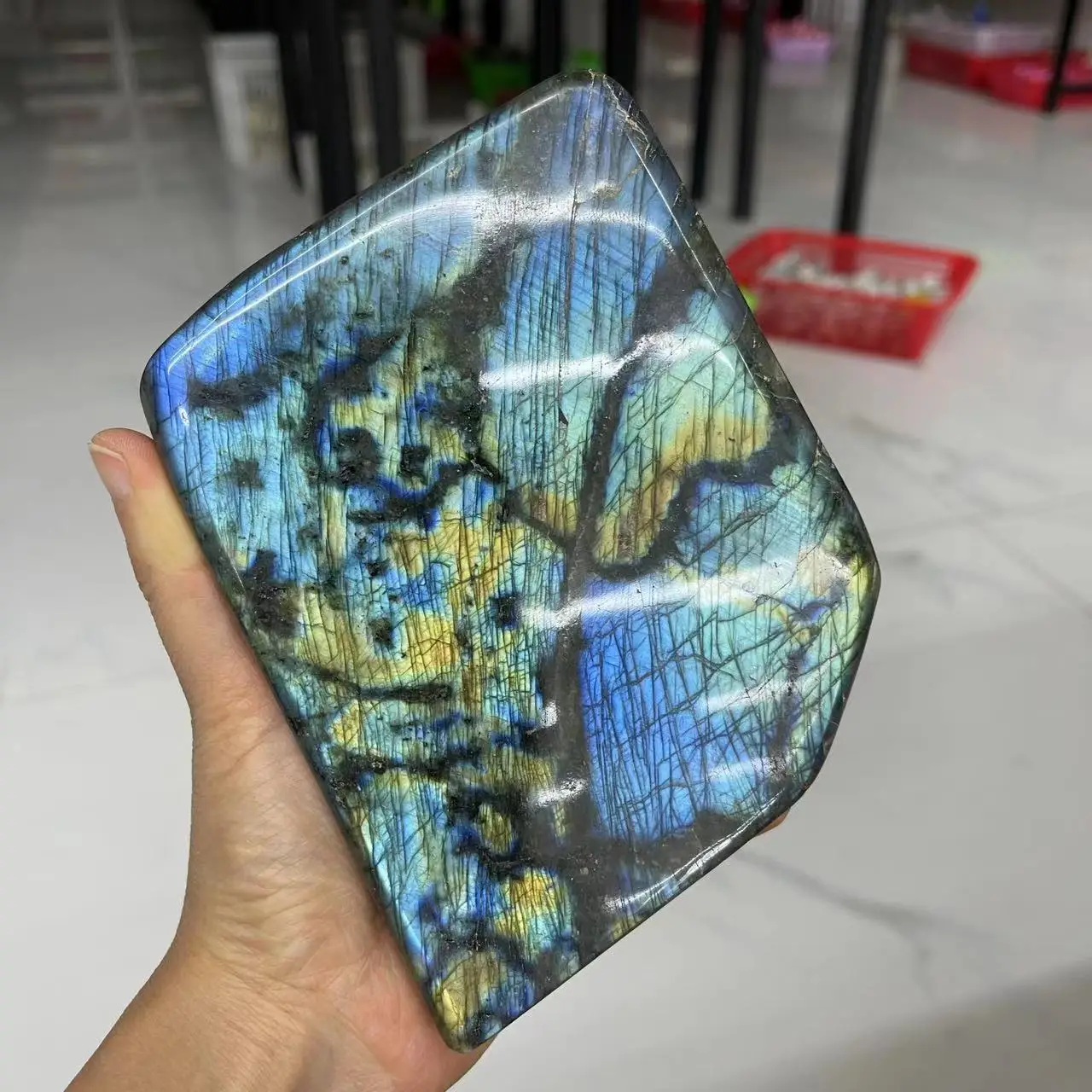 Pretty Natural Crystal Quartz Polished Gemstone Large Labradorite Stone with Blue or Yellow Flashy