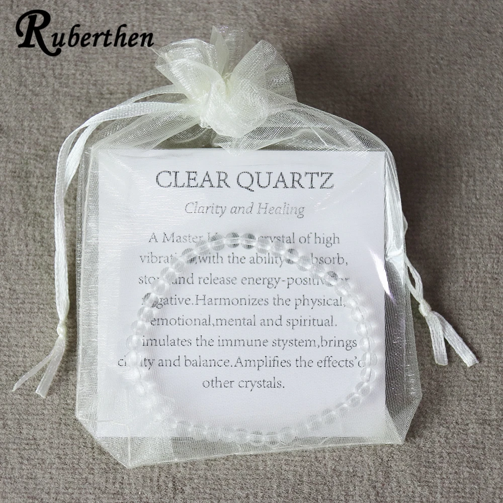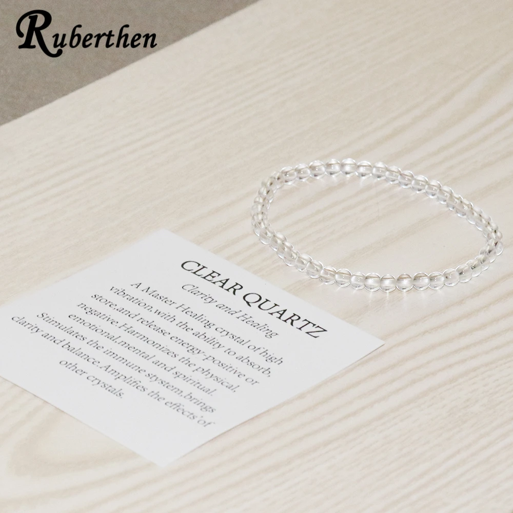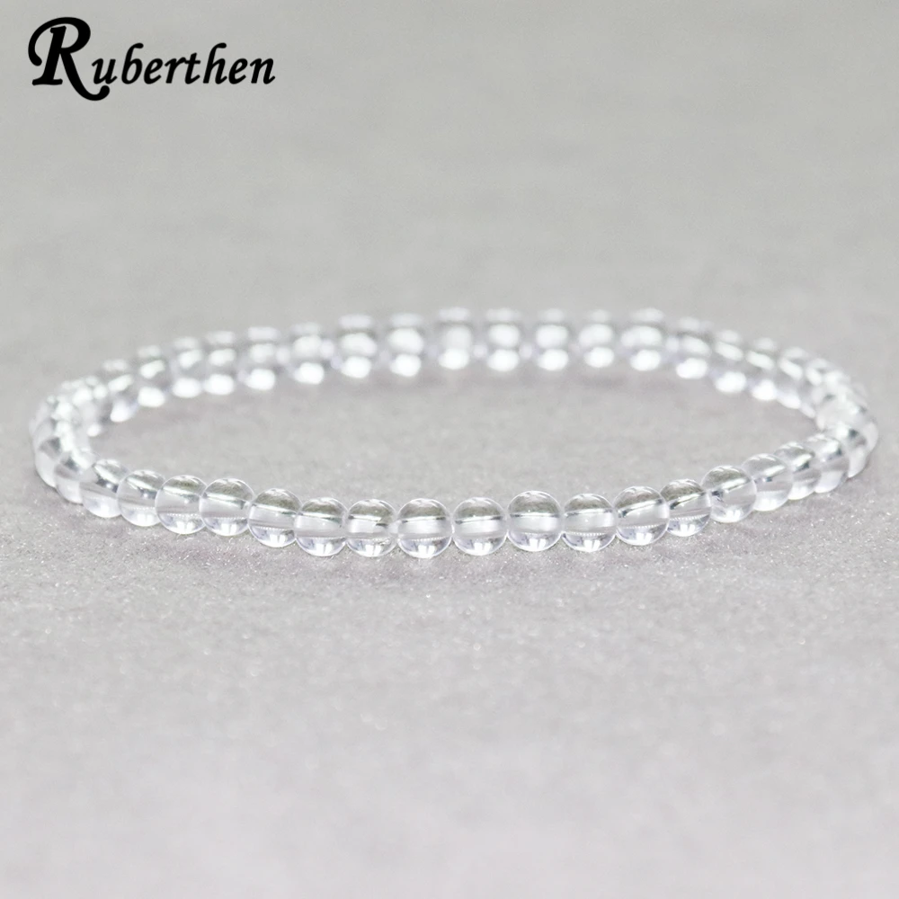 Ruberthen 4 MM Clear Quartz Bracelet Natural White Crystal Stone Beads Bracelet Mini Gemstone Energy Bracelet