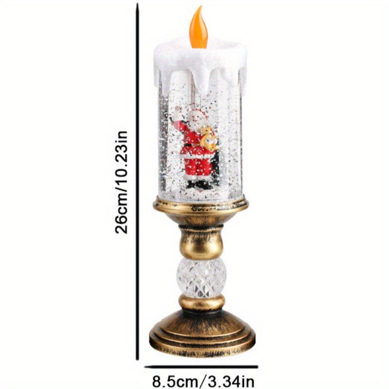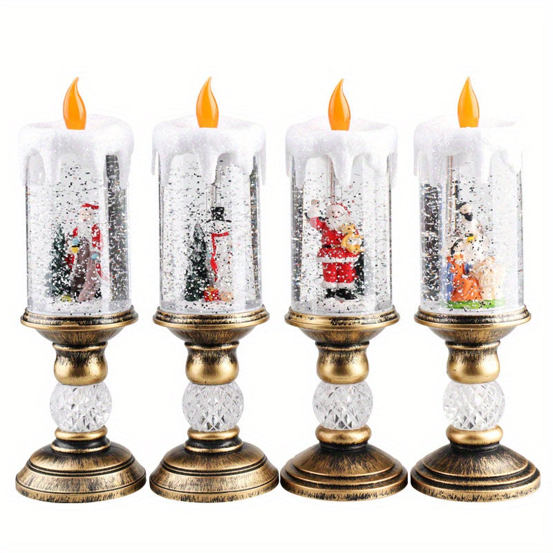 Santa Christmas Snowman Christmas Tree Christmas Decoration, Water-filled Candles With Scene Interior Decoration Christmas Crystal Lights Snow Santa Presents Flameless Candle Lights (with Music)