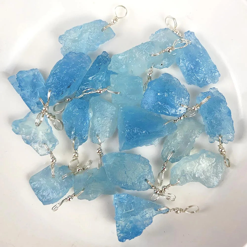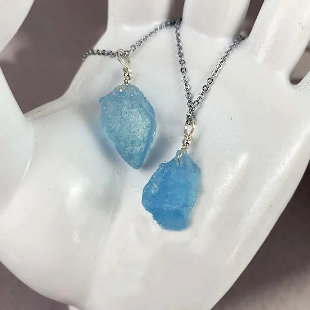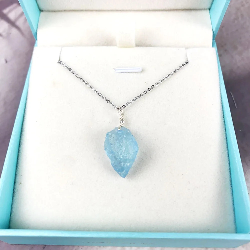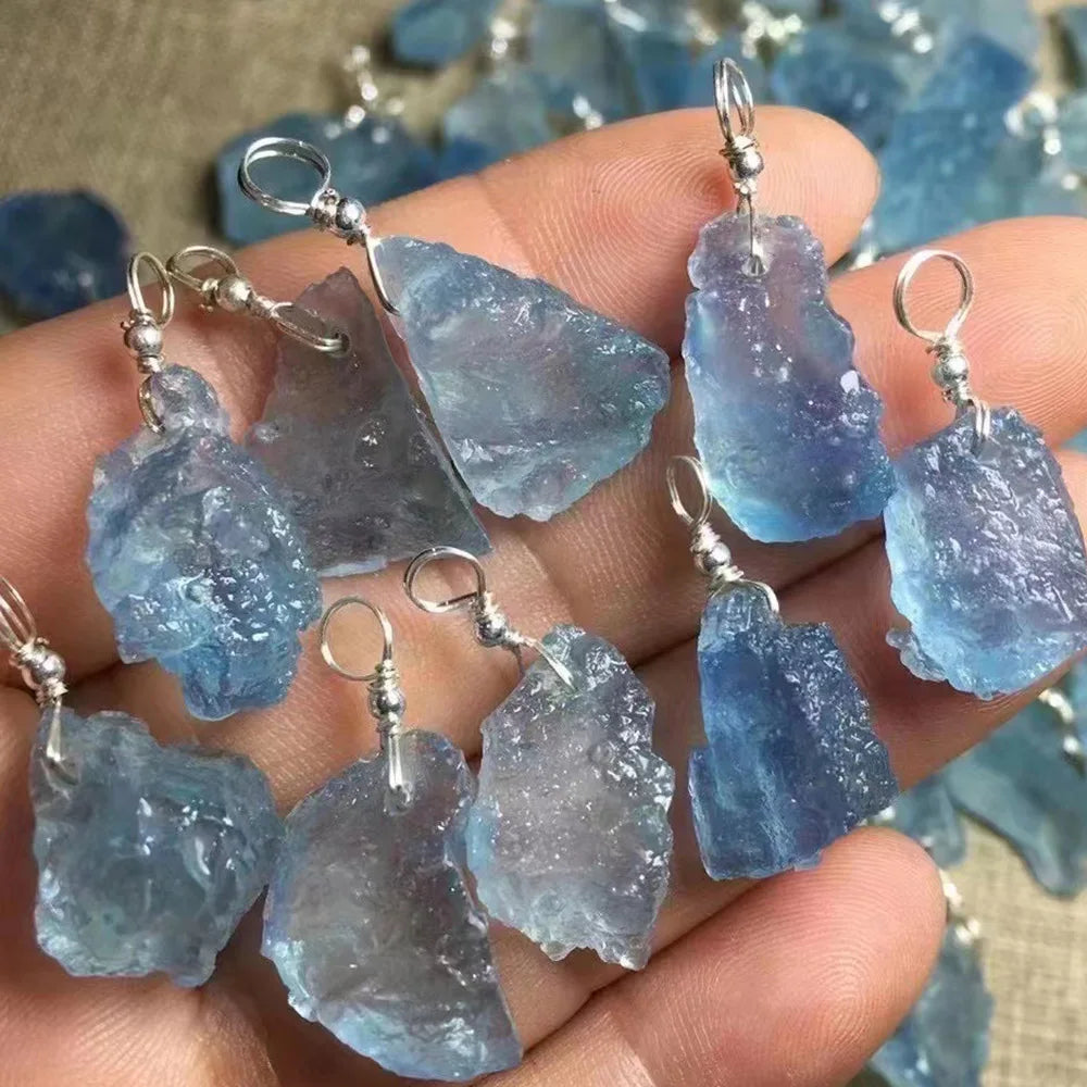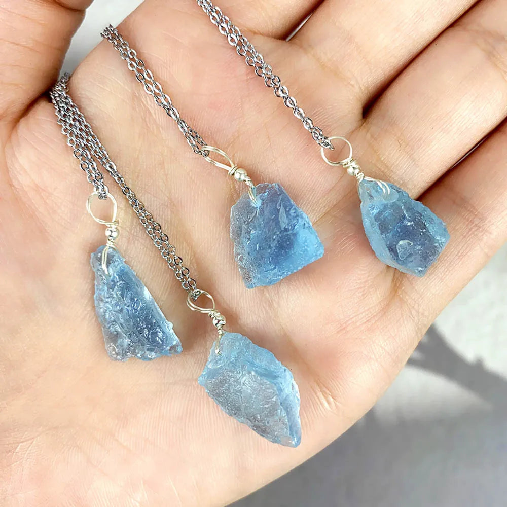 Wholesale Raw Aquamarine Pendant Natural Crystal Real Gemstone Blue Beryl Mineral Rough Stone Neclace For Jewelry Woman Gift