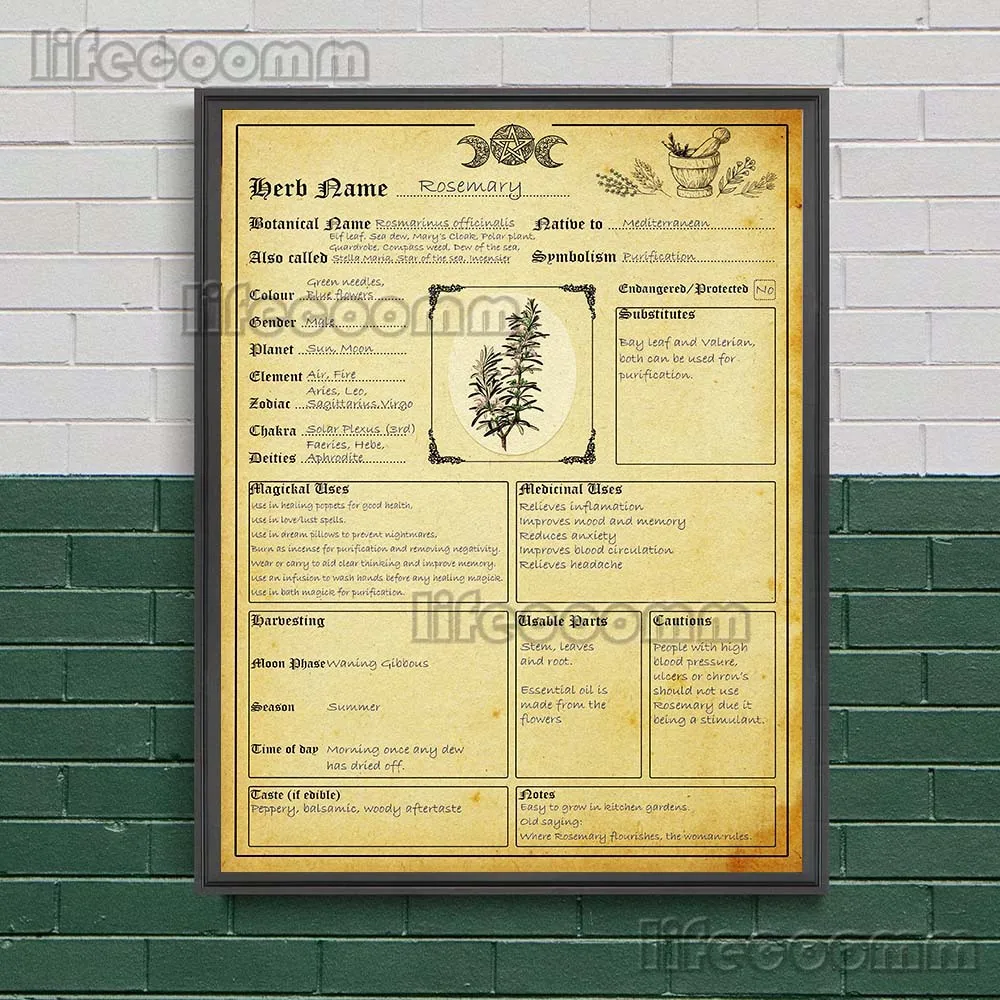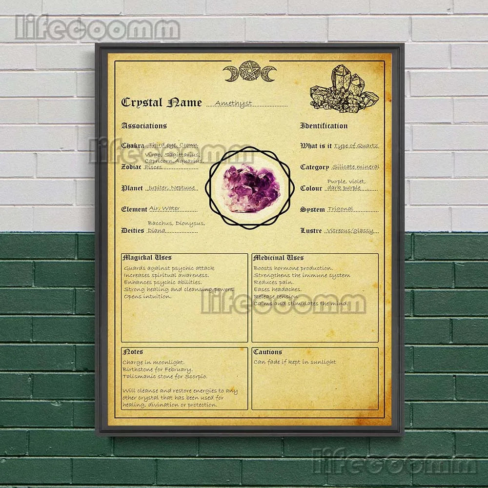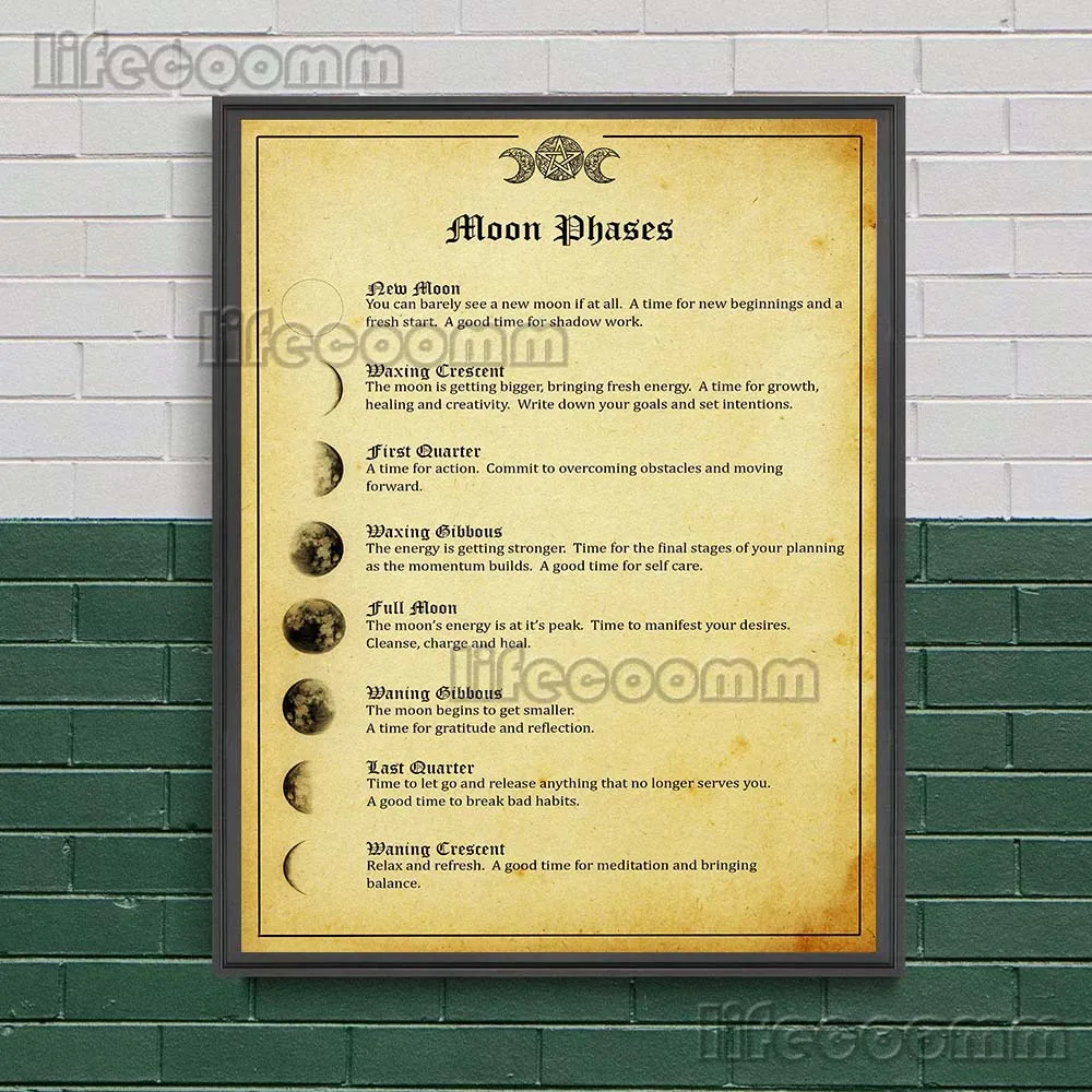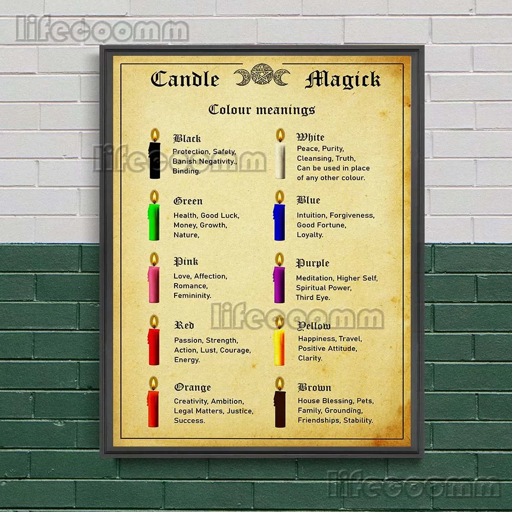 Witchcraft Book Of Shadows Wall Art Canvas Print Pagan Witches Runes,Moon Phases,Candle Magick Colour Art Poster And Print Decor